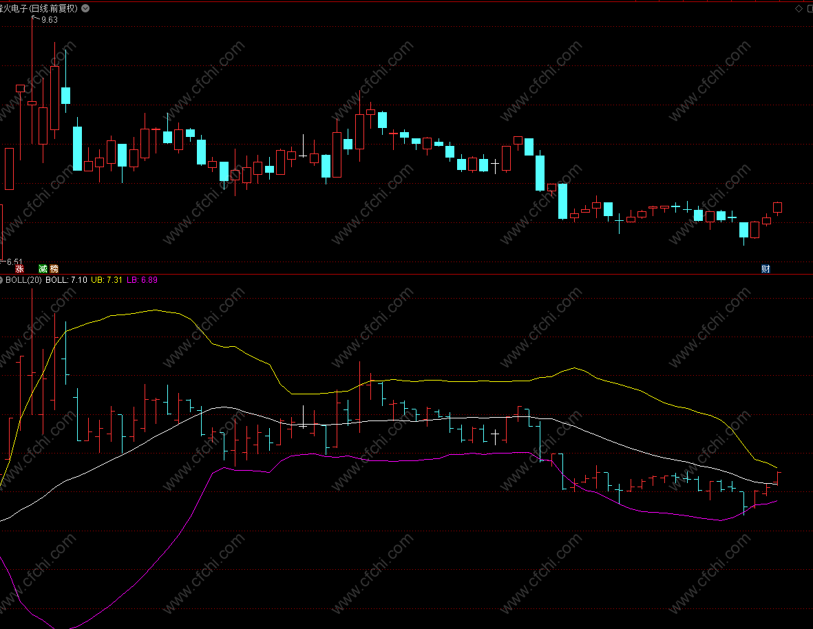 2、当布林线的上、中、下轨线同时向下运行时,表明股价的弱势特征非常明显,股价短期内将继续下跌,投资者应坚决持币观望或逢高卖出。