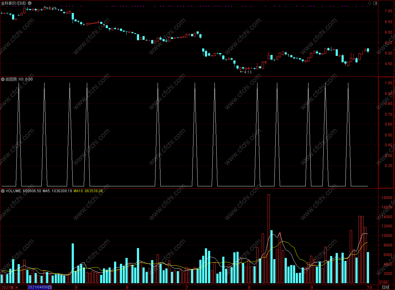 该指标选用后,适合的股票多为阳吞阴或低位十字星调整 从概率上来说,后市继续走强的可能性较大