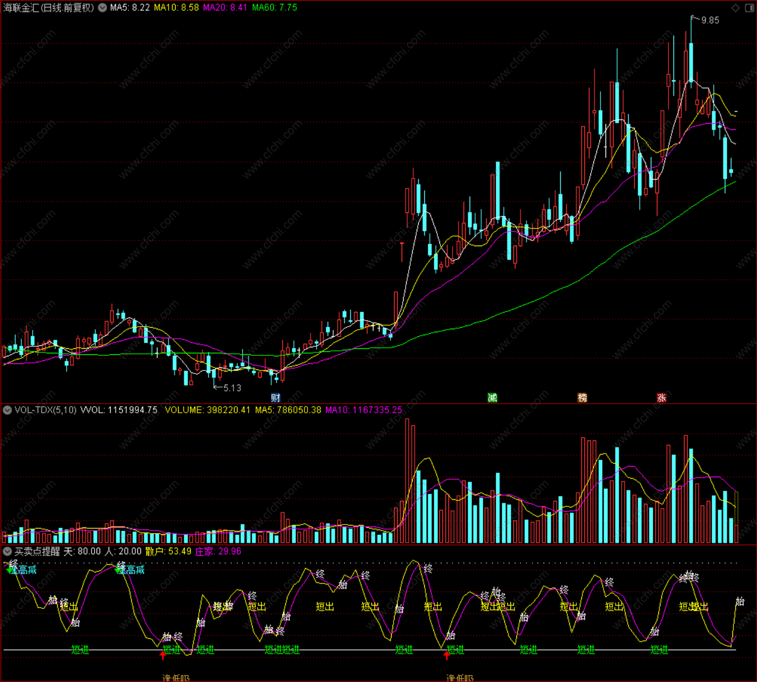【财富池_量能分析】红粉黄绿四色绝版官方原创核心指,还原个股真实走势(量能判断)