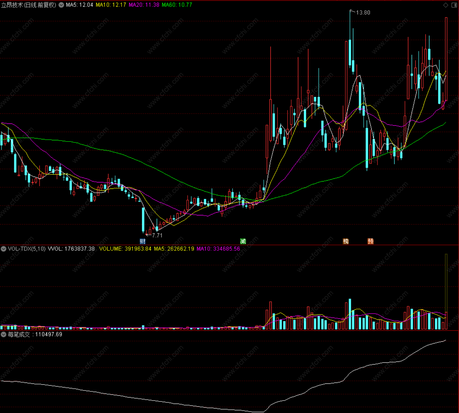 当他们拉抬时,由于对敲拉抬,且不可能如吸筹时再投入更多资金、加入散户跟风者众多,故虽出现“价量齐升”但每笔成交应有所减少。