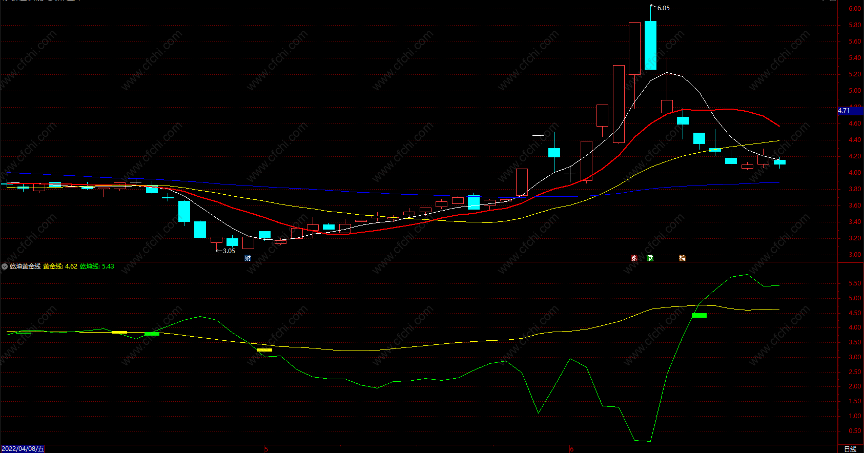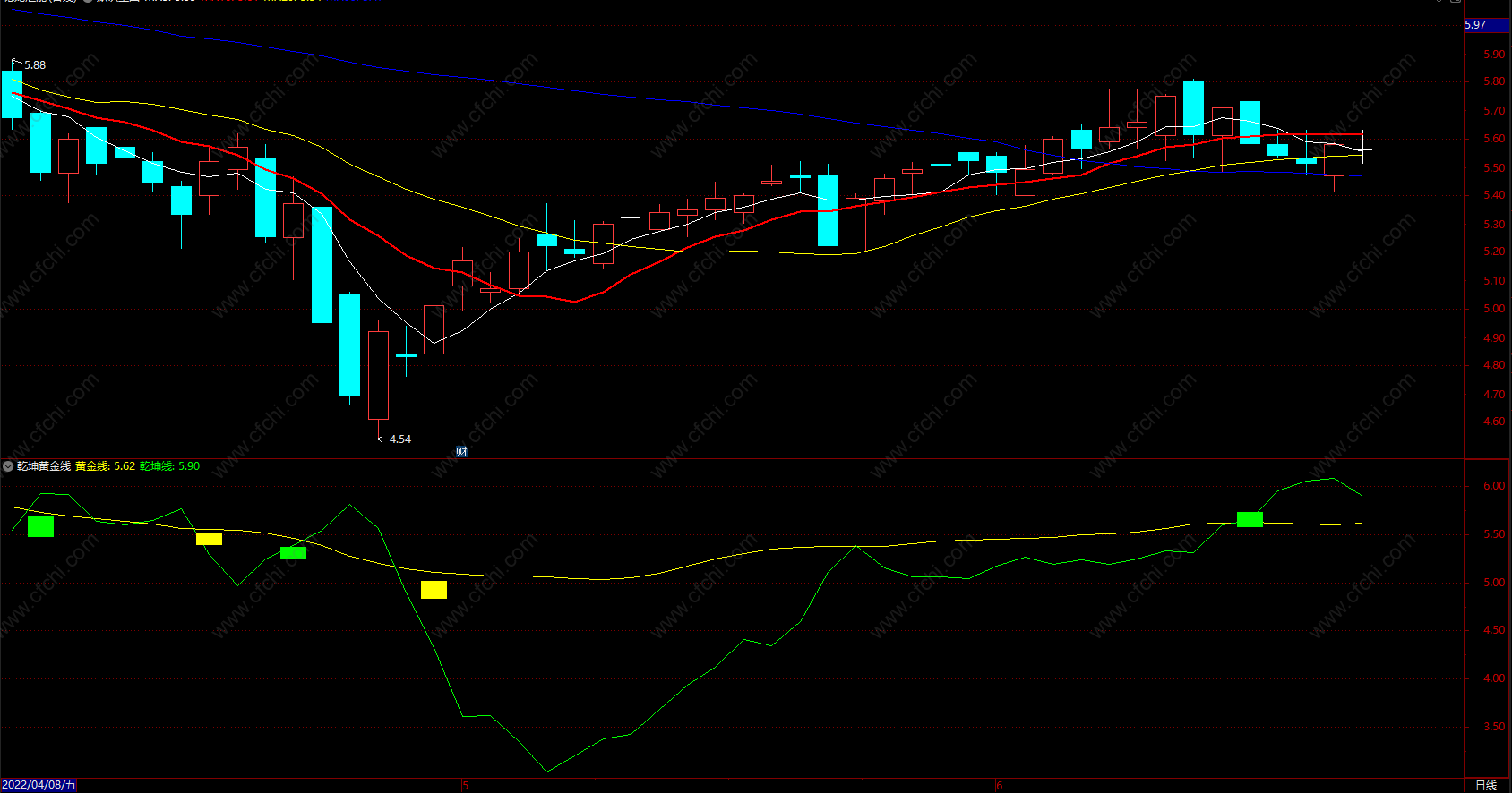 (乾坤黄金线 通达信副图指标公式买卖黄金线 副图 源码)
