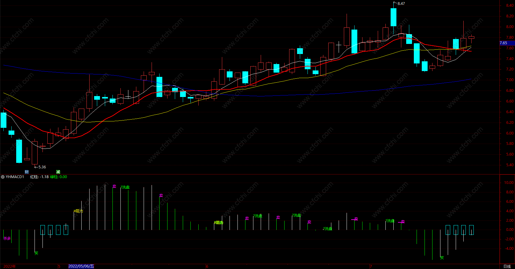 红柱:IF(1.5*(DIFF50-DEA50)>REF(1.5*(DIFF50-DEA50),1),1.5*(DIFF50-DEA50),0),