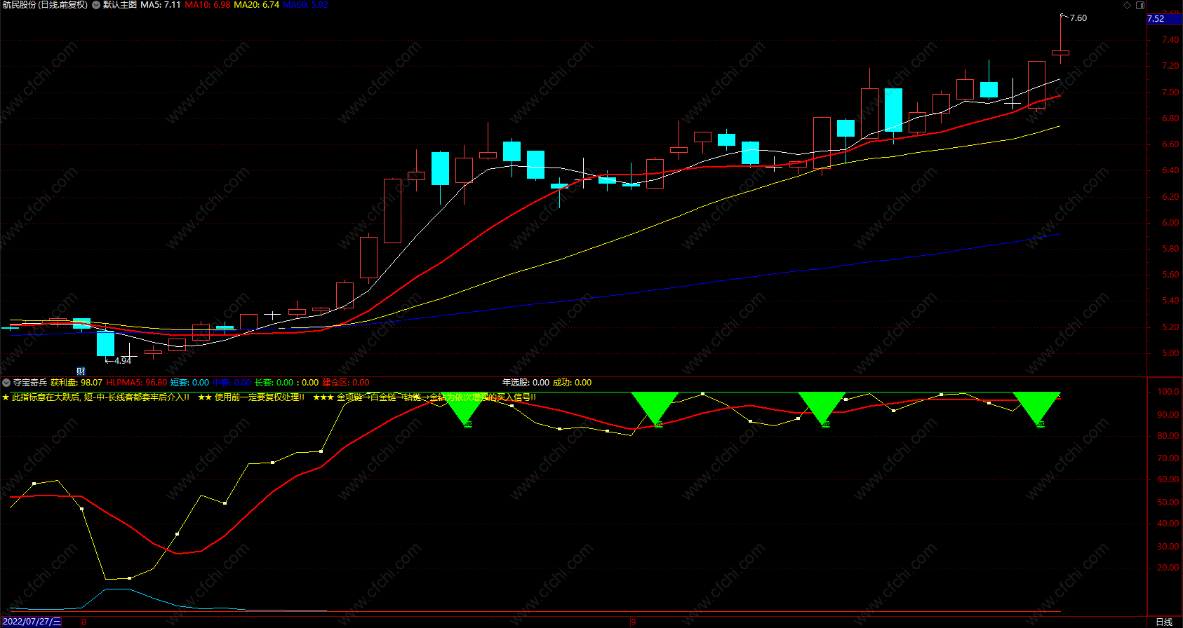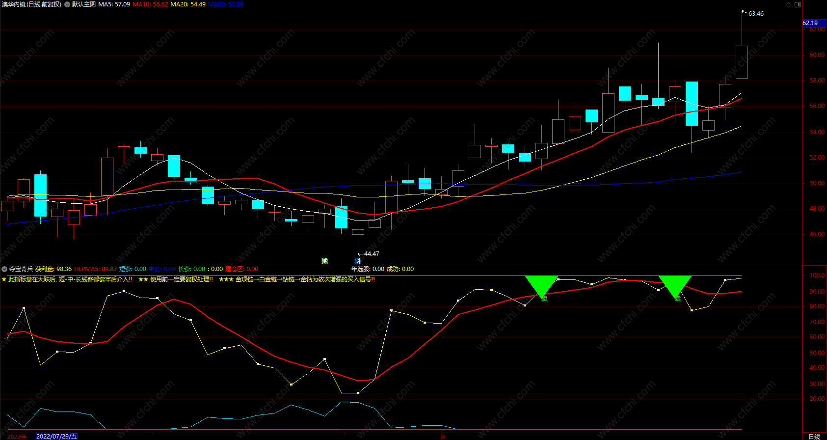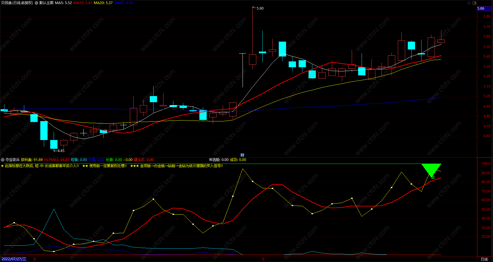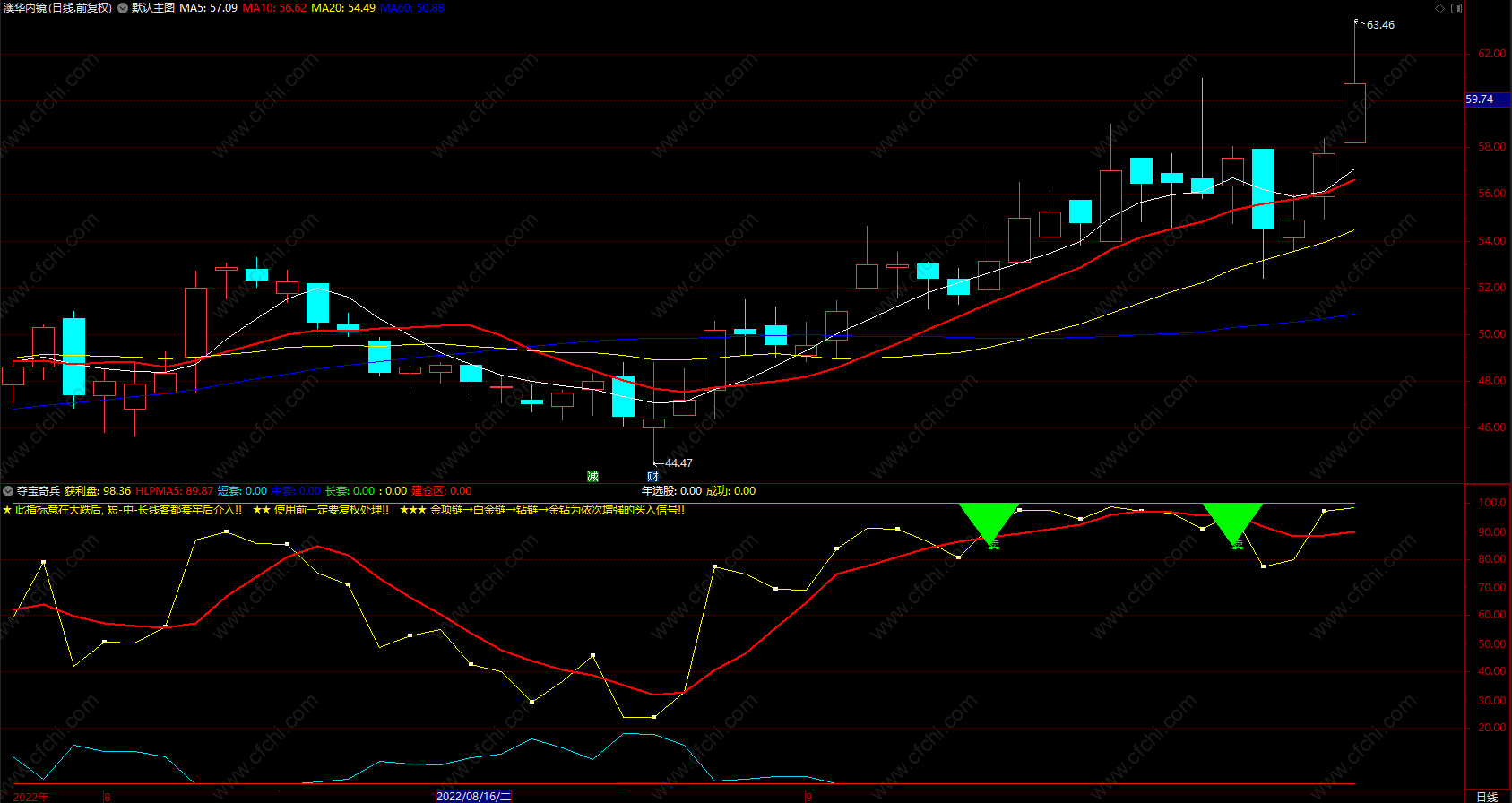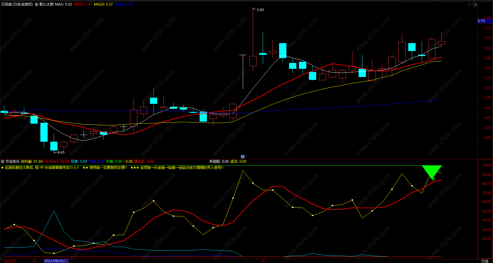 财富池指标公式网(www.cfchi.com)提醒您:指标公式是通过数学逻辑角度编写而来,仅是股票分析环节中的一个辅助工具,对股票选股效率和分析便捷上起到一定的作用,股市是具有不确定性和不可预测性的,请正常对待和使用指标公式!