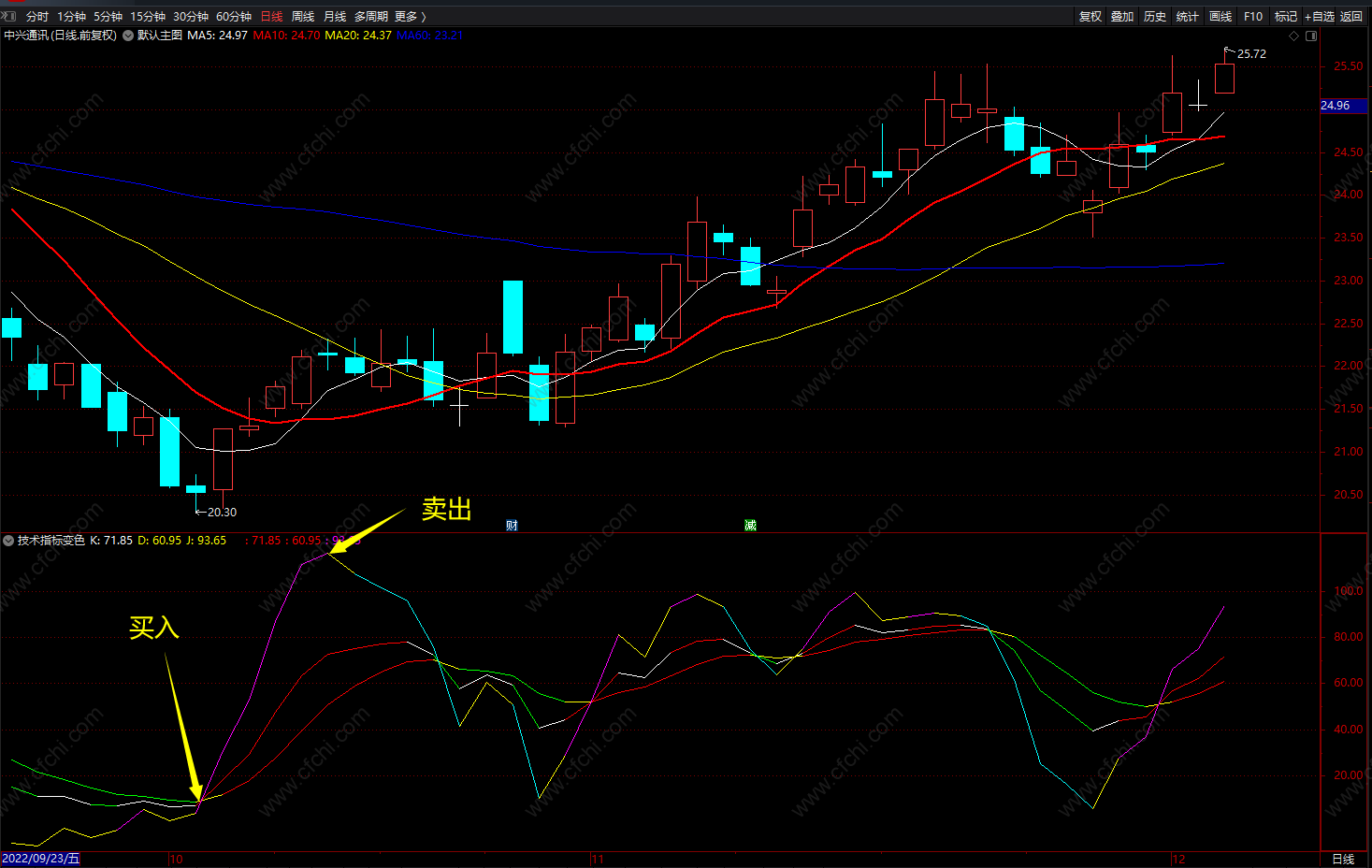 技术指标变色 KDJ分段线 通达信精准趋势线副图指标公式 源码