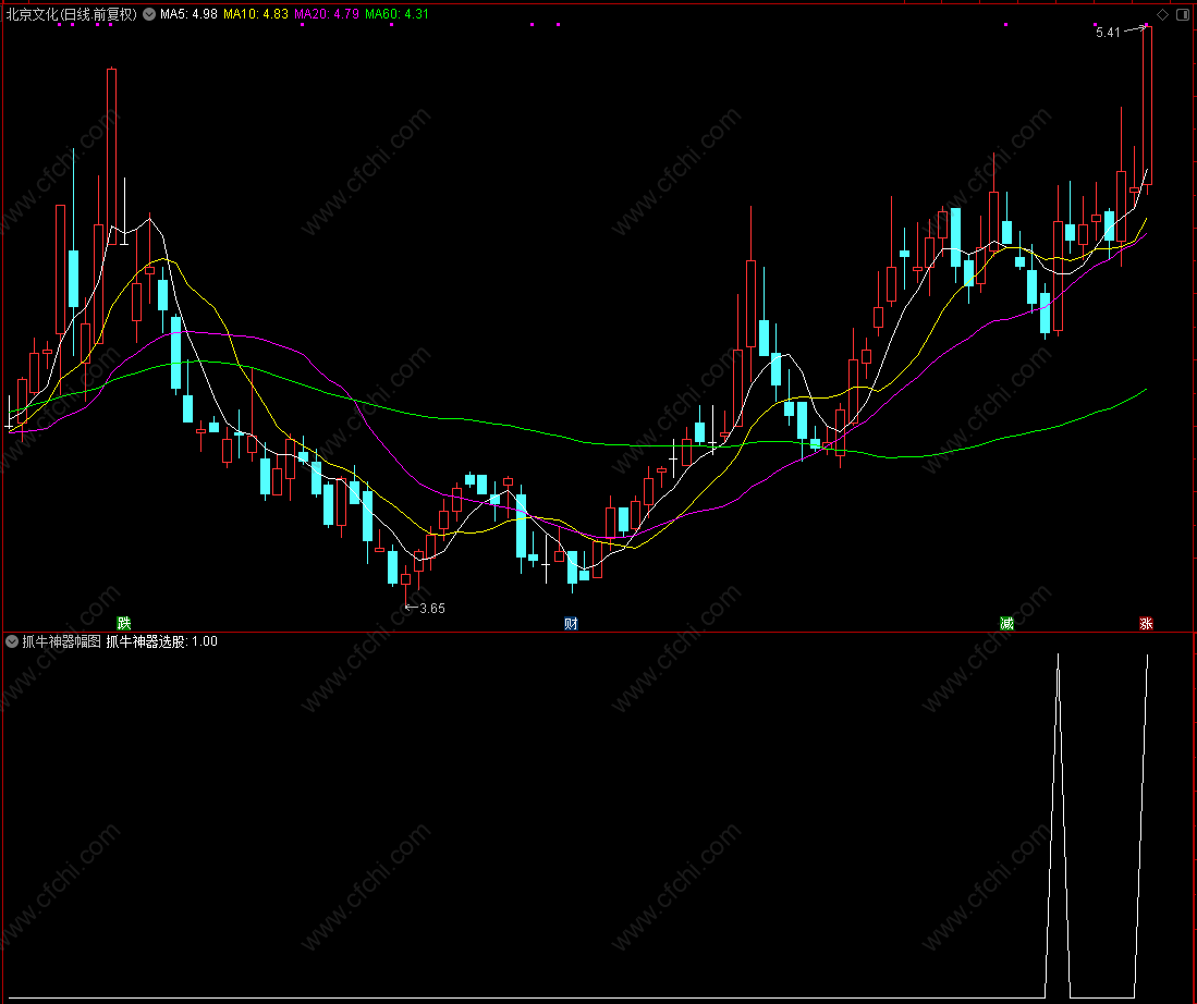 财富池指标公式网(www.cfchi.com)提醒您:指标公式是通过数学逻辑角度编写而来,仅是股票分析环节中的一个辅助工具,对股票选股效率和分析便捷上起到一定的作用,股市是具有不确定性和不可预测性的,请正常对待和使用指标公式!