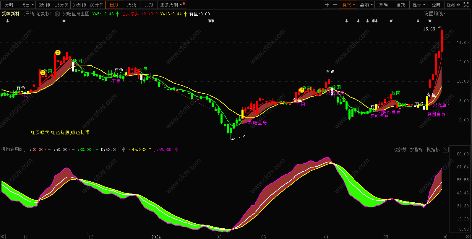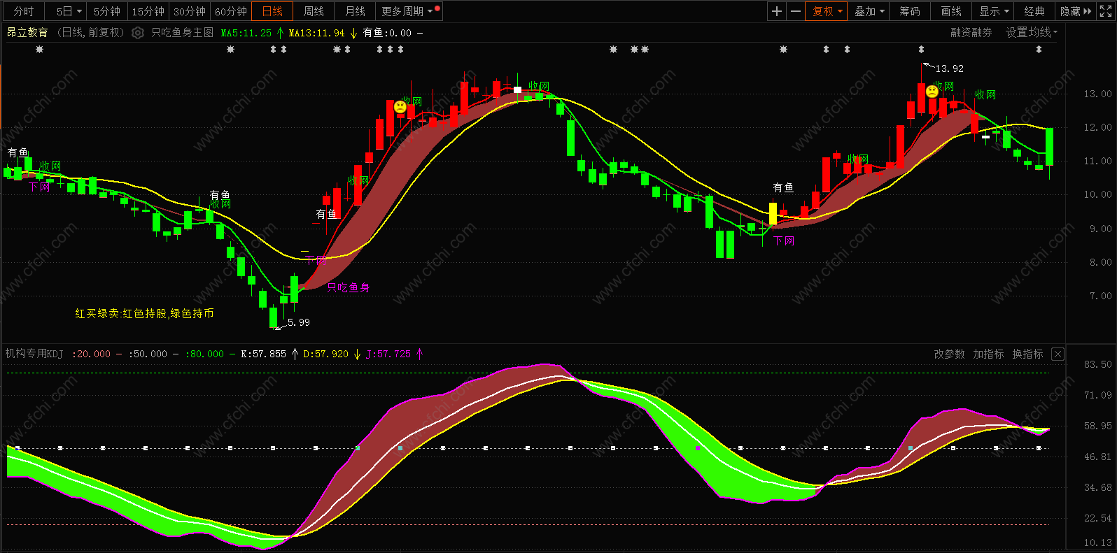 机构专用KDJ副图,90%以上的人不知道KDJ的正确用法,优化过滤掉虚假的买入信号,就能找到高质量的成功买入信号,能做波段买卖操作用。手机和电脑都能用。永久版,不加密,无时间限制。无未来函数,不漂移。