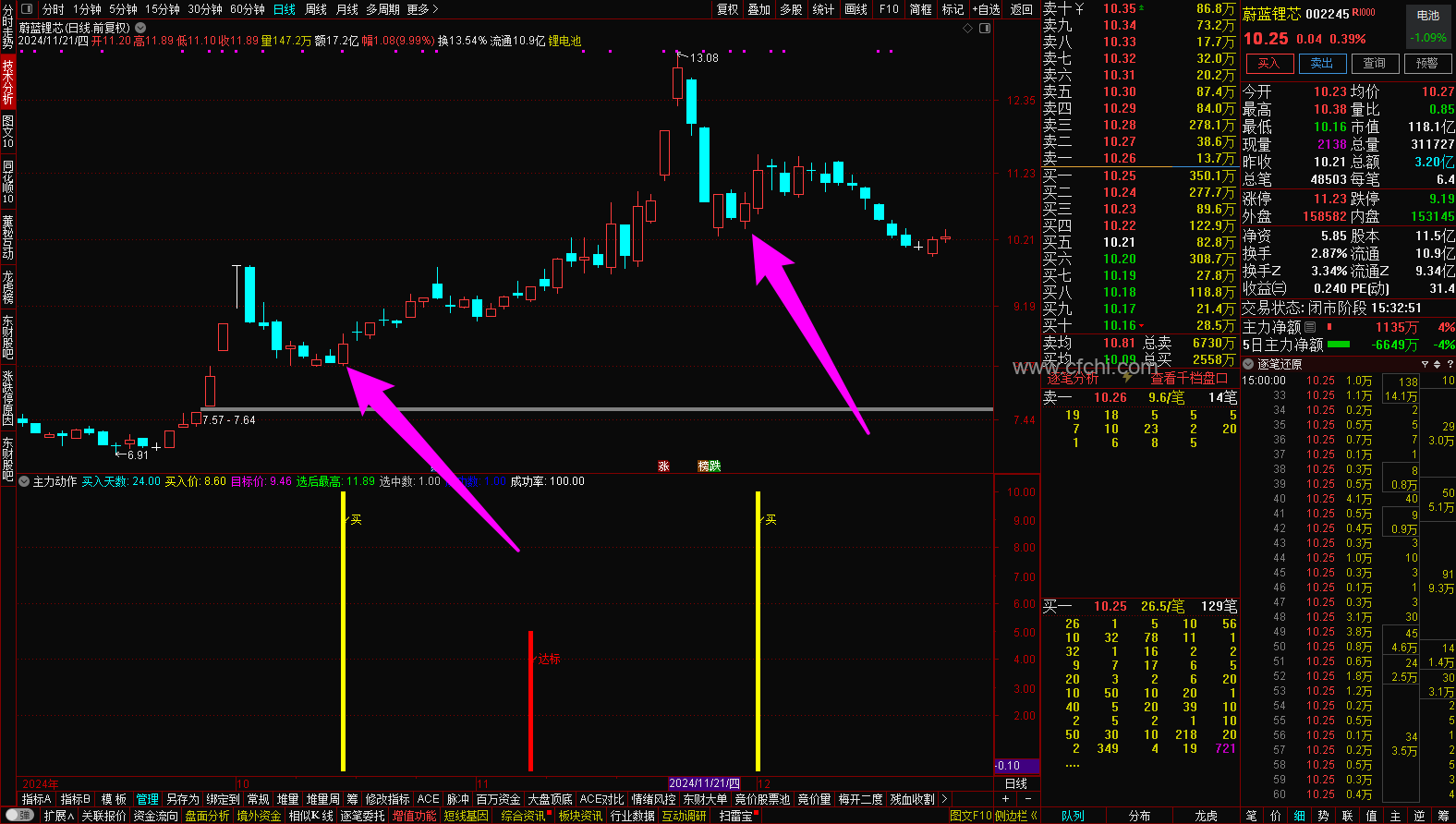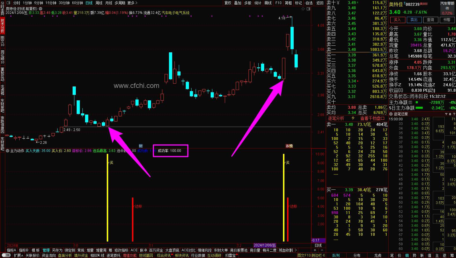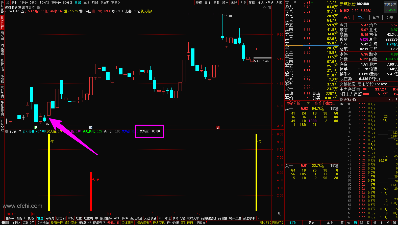 为了提高成功率,选股指标采用的是选取最近一年内出现主力异动信号后成功率超过80%的个股,大部分是最近一年内成功率100%的个股。因为一只股票在最近一年内出现主力动作信号后成功率100%,说明这只股票适合主力操作,也能说明这只股票和这个指标的适应度很高,那么再次出现主力动作信号后的成功率也会大大增加。