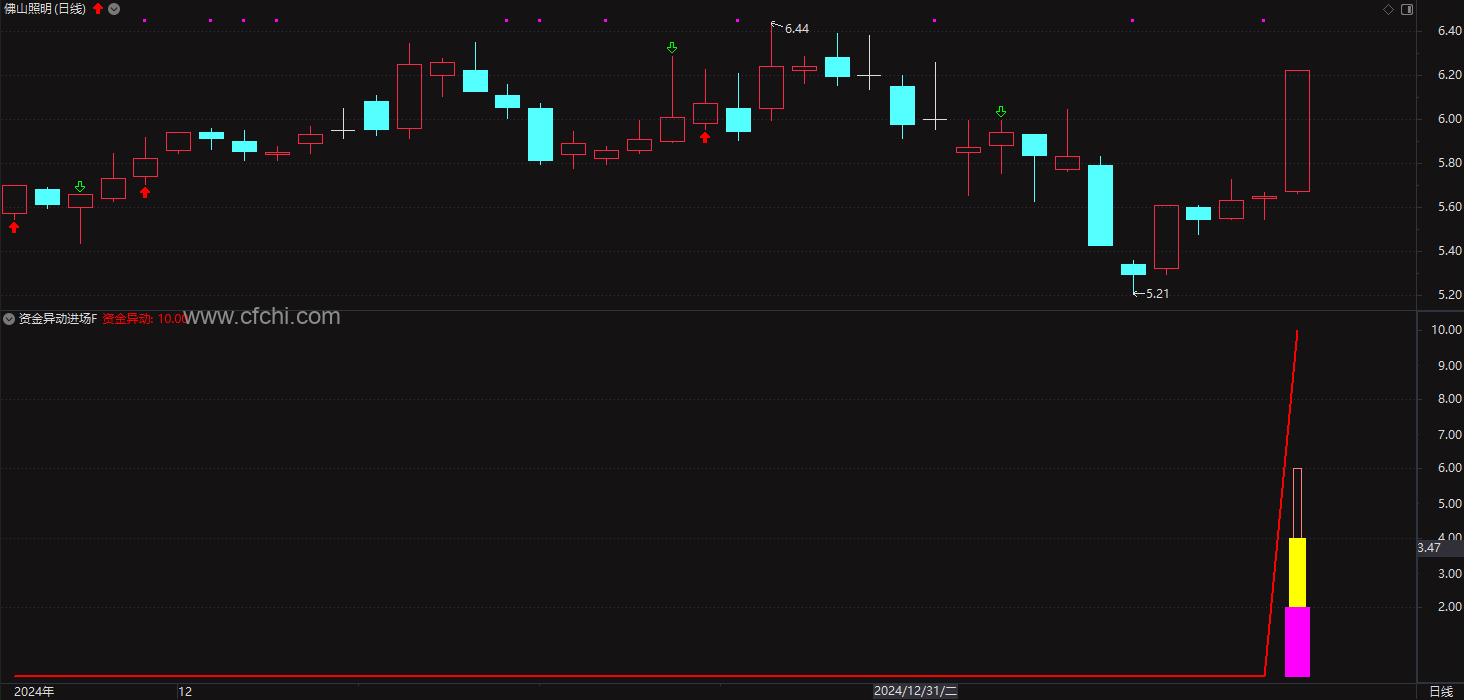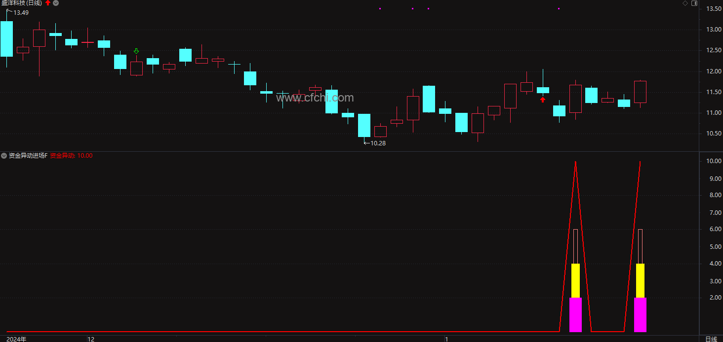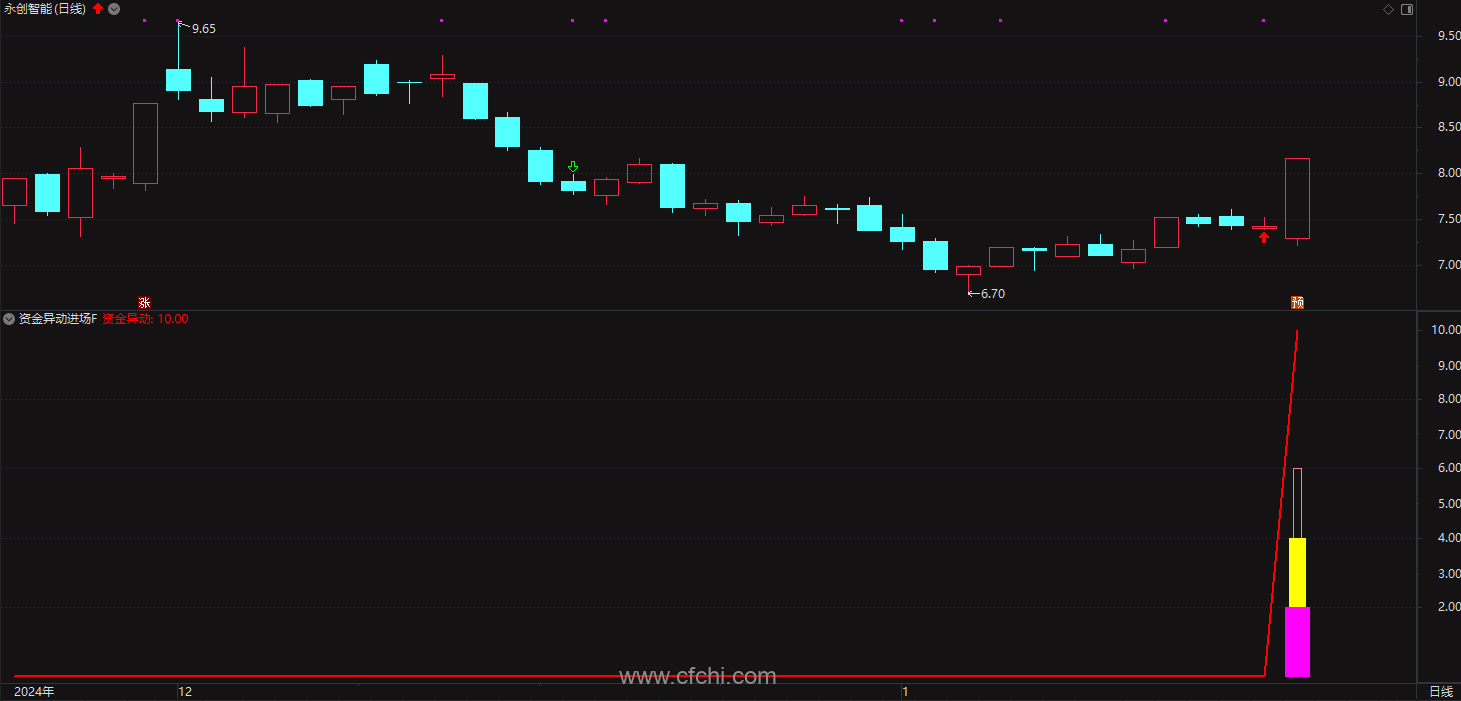 通达信【资金异动进场】副图/选股预警指标 源码