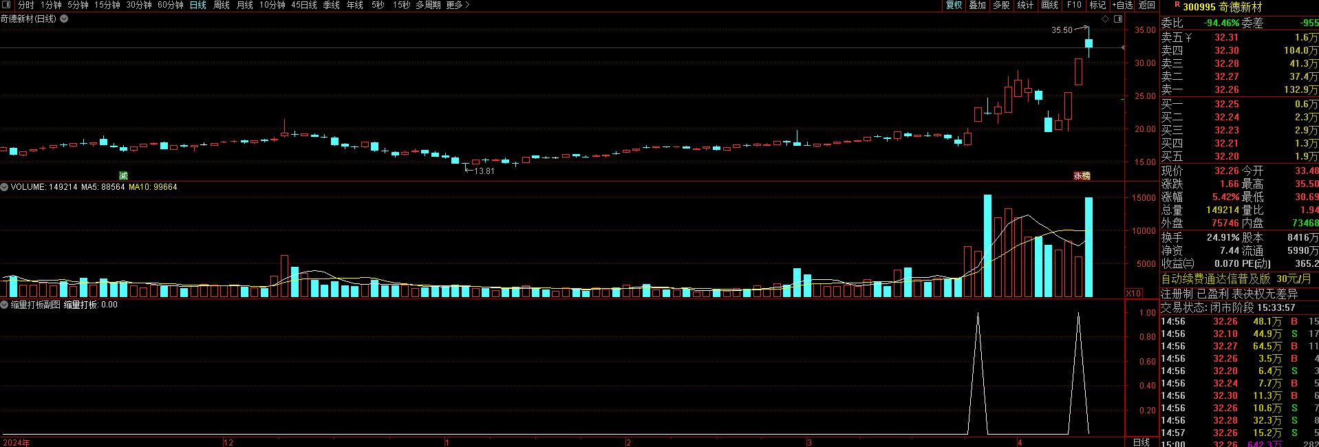 (通达信缩量打板是一个技术分析指标,用于识别符合特定条件的强势股票形态。)