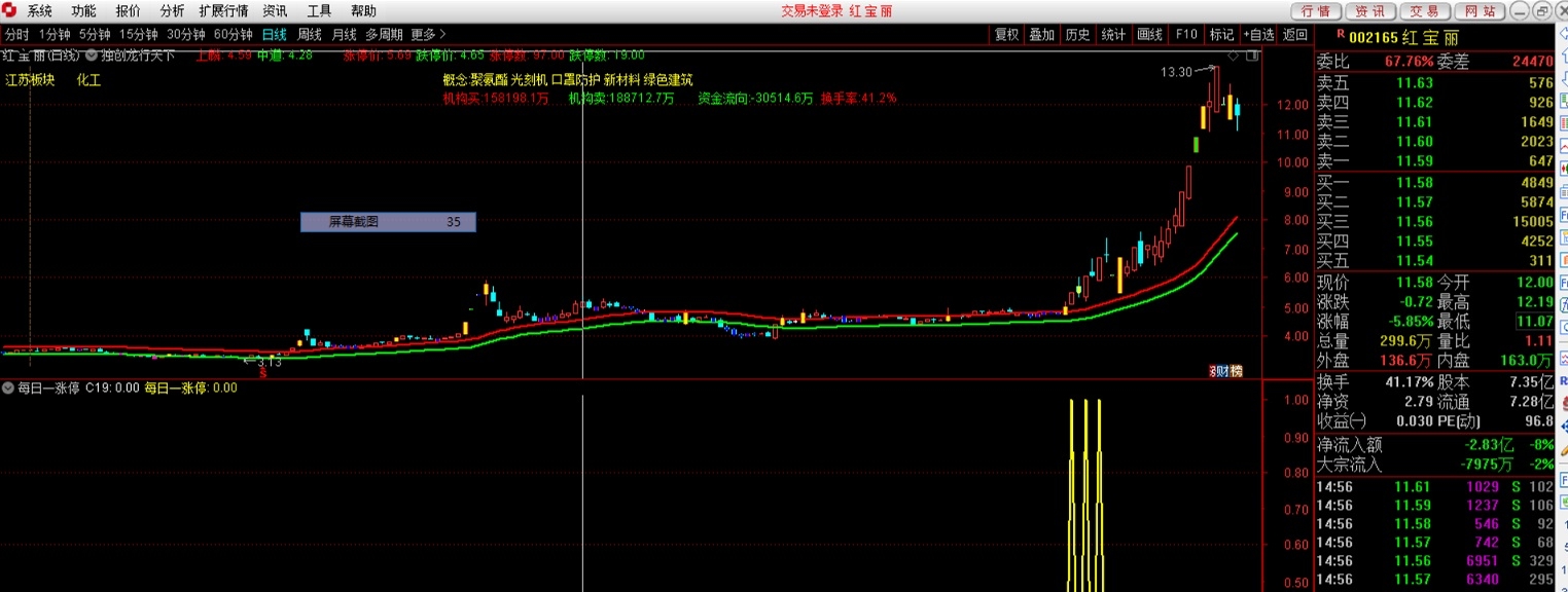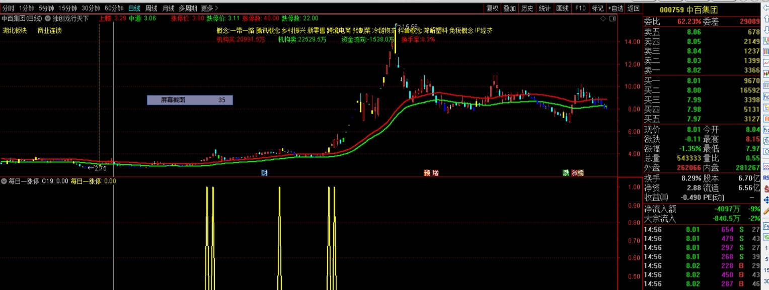 量化利用大模型,大数据作为操作依据,我们利用量化强大资金推高的过程中跟上,及时出局来获利,正式基于这样,我们做出来每日一涨停指标,低位进,到达涨停出,当然,跟随量化,大资金出,我们就跟着出。