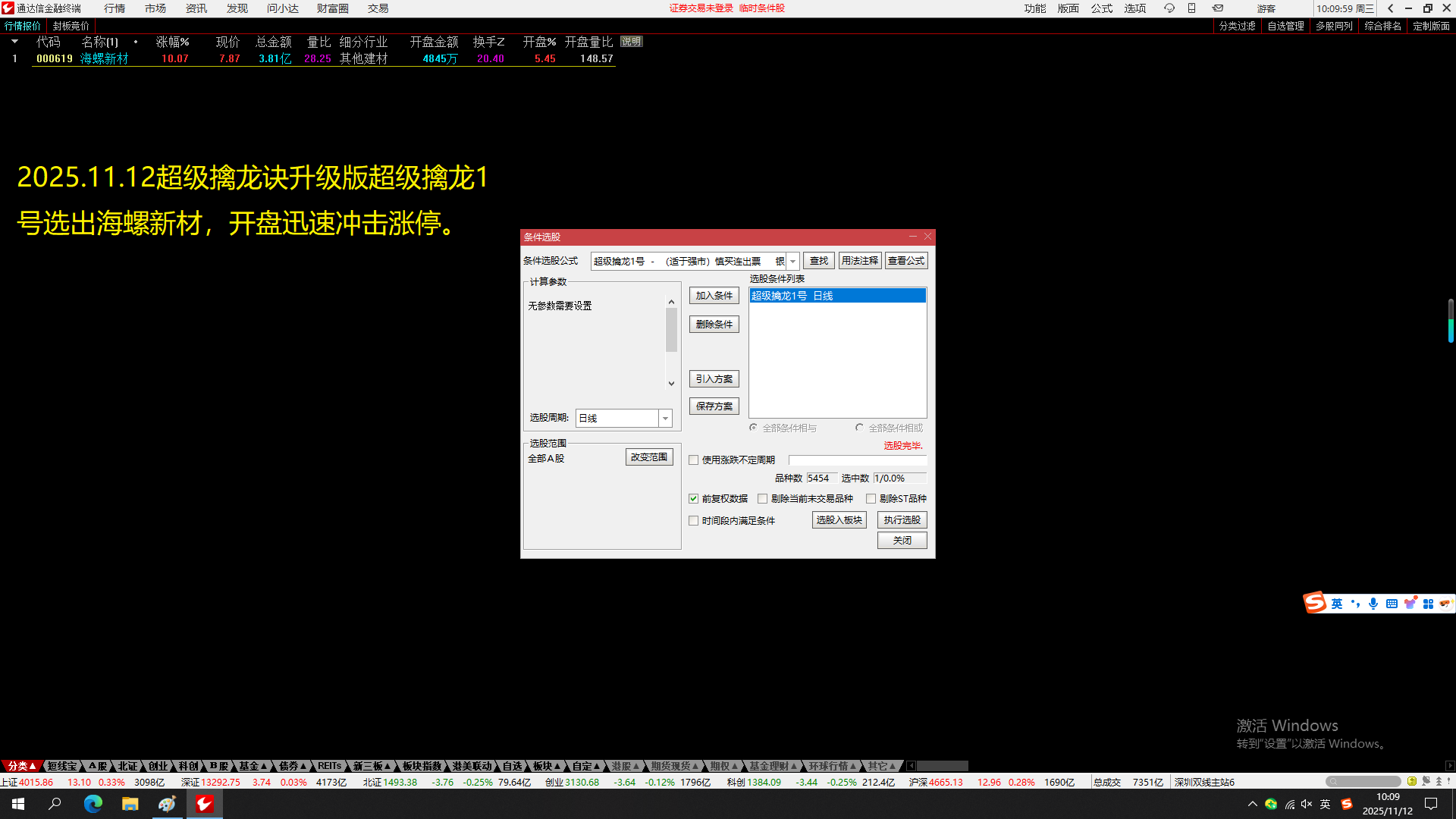 2.擒龙诀适合在电脑上安装了通达信的朋友选股使用,且可以在每天9:25以后的任何时间进行选股,省去了朋友们为选股而花大量的时间和精力。且可以在9:30开盘之前快速了解擒龙诀选出的股票,为交易提前提供参考。