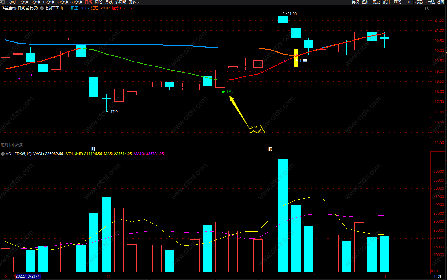 买入信号:DRAWICON(CROSS(趋势4,底部),LOW,1);
