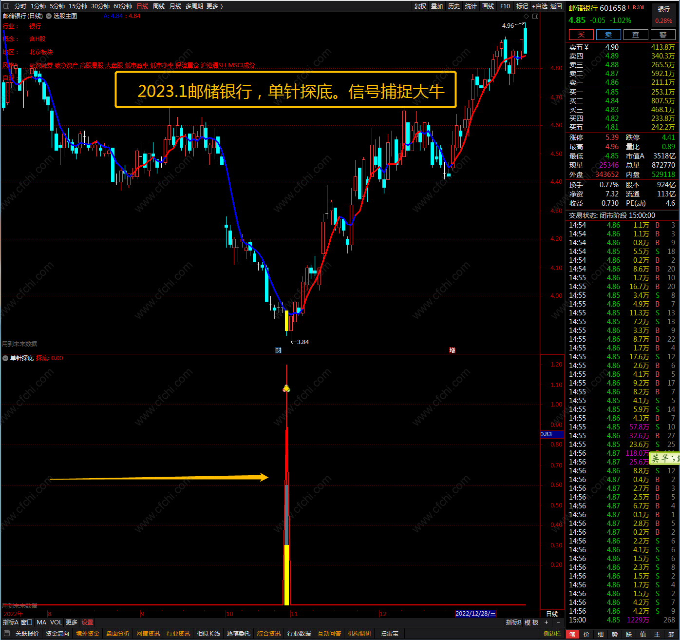(2023镰刀 【单针 探底】三合一。捕捉阶段底,吃下主升浪!主力,资金,筹码,涨停板)