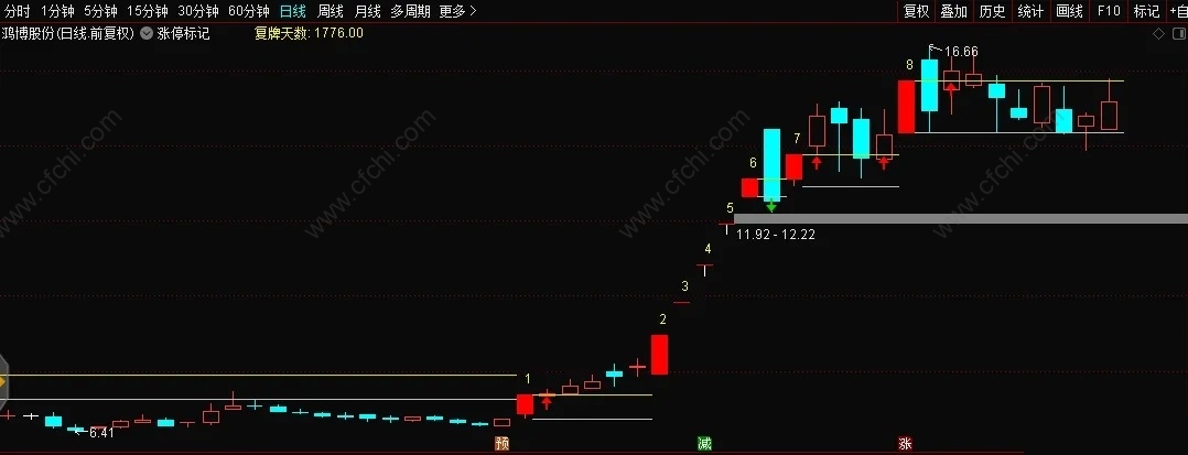 女神节纪念版通达信【涨停标记】主图指标,标记涨停个数和停复牌记录,源码分享