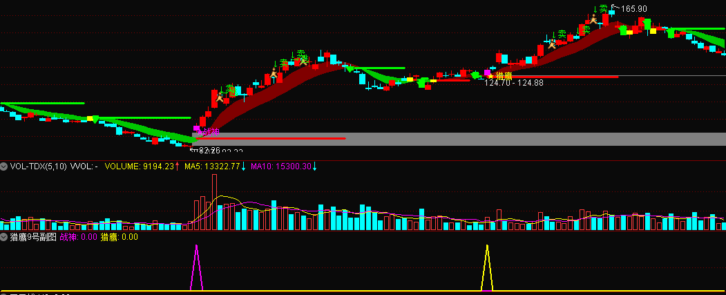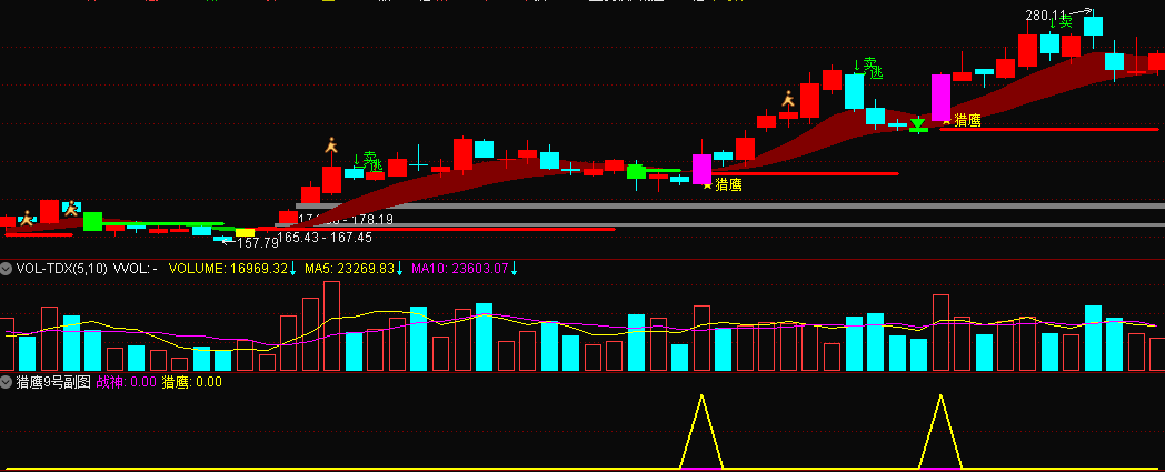 .紫色 K 线:表示猎鹰战神信号;