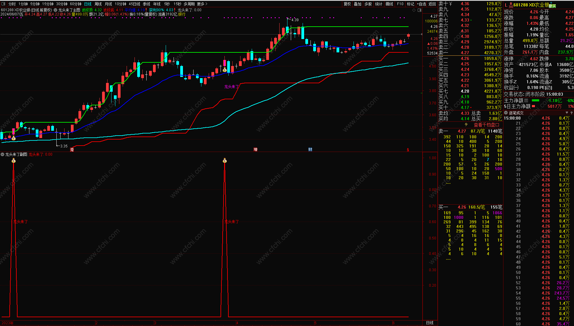 (金典通达信【龙头来了】套装指标 主副图+选股指标 )