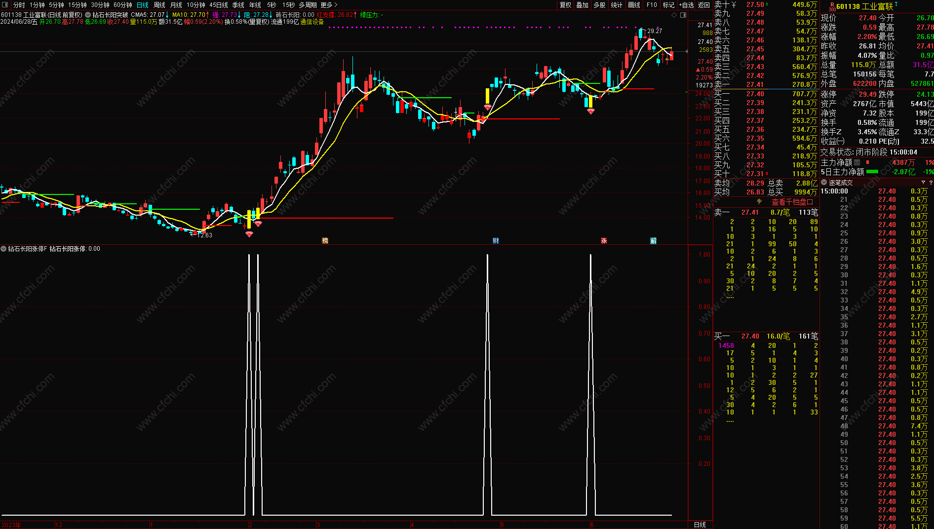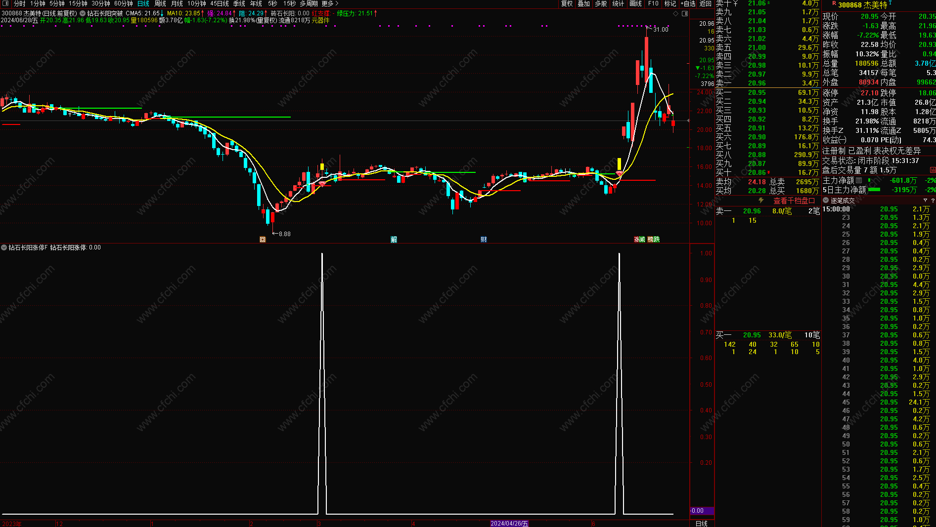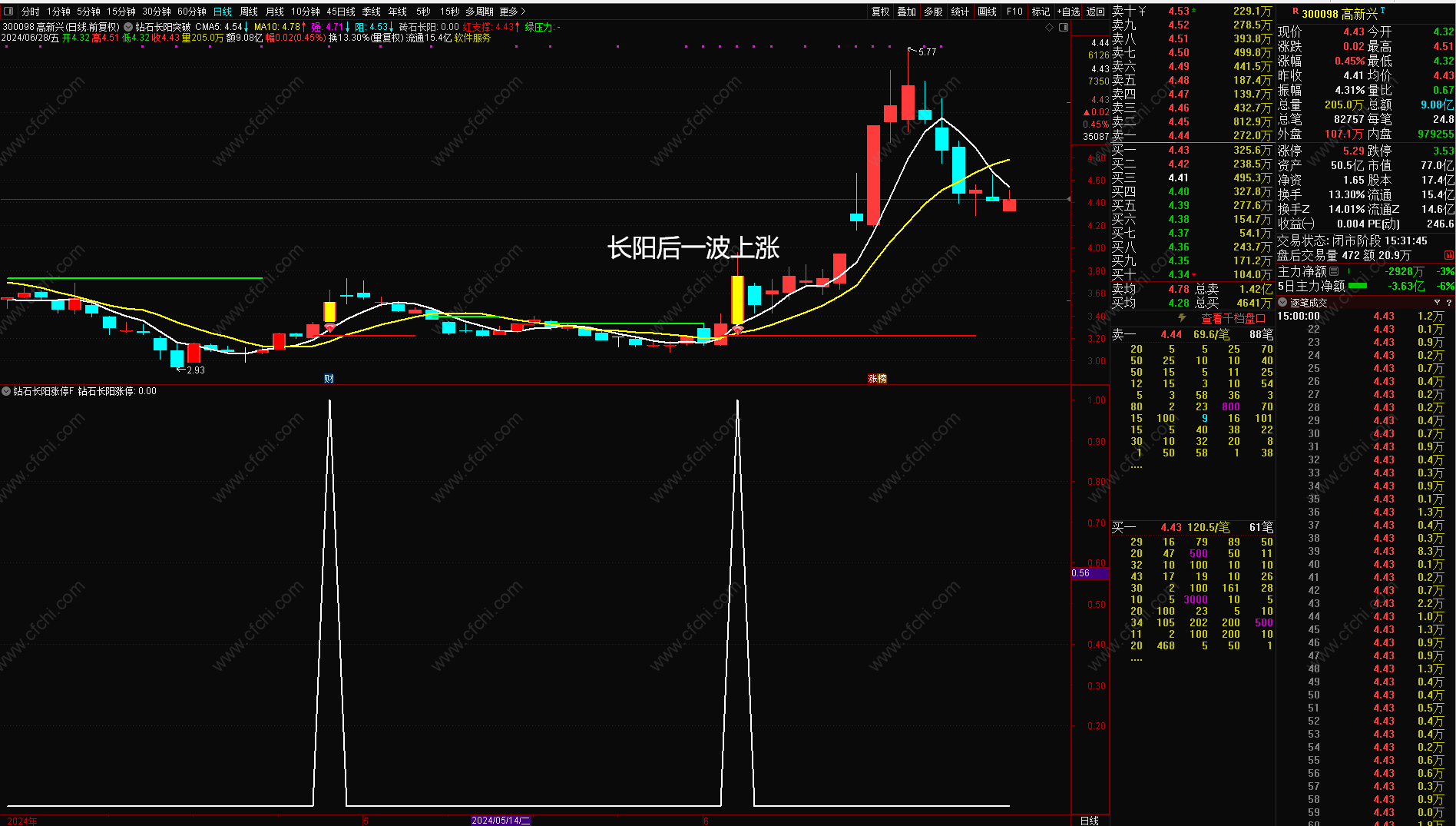 (金典通达信钻石长阳涨停主图附图选股指标)