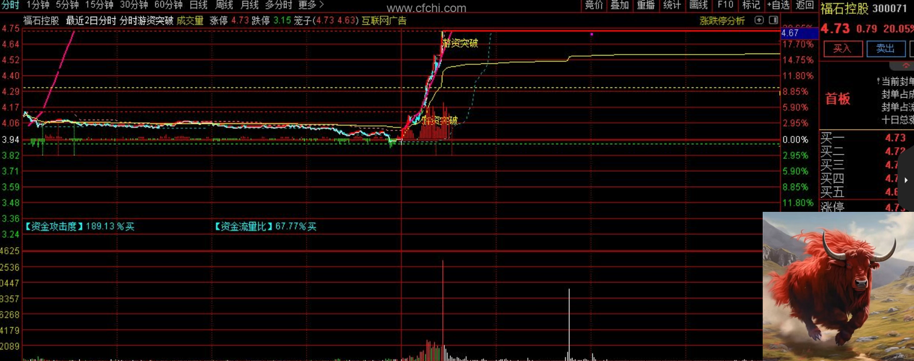 (财富金池通达信【分时游资突破】分时主图 分时图突破追涨停板的指标神器)