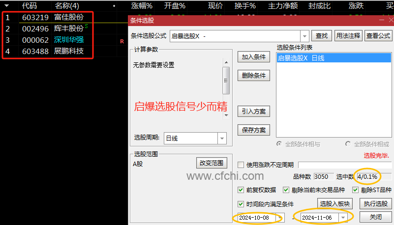 财富池指标公式网(www.cfchi.com)提醒您:指标公式是通过数学逻辑角度编写而来,仅是股票分析环节中的一个辅助工具,对股票选股效率和分析便捷上起到一定的作用,股市是具有不确定性和不可预测性的,请正常对待和使用指标公式!