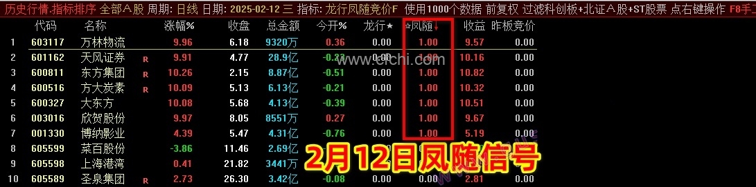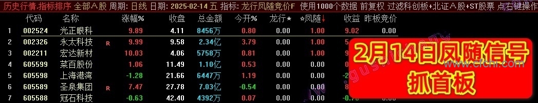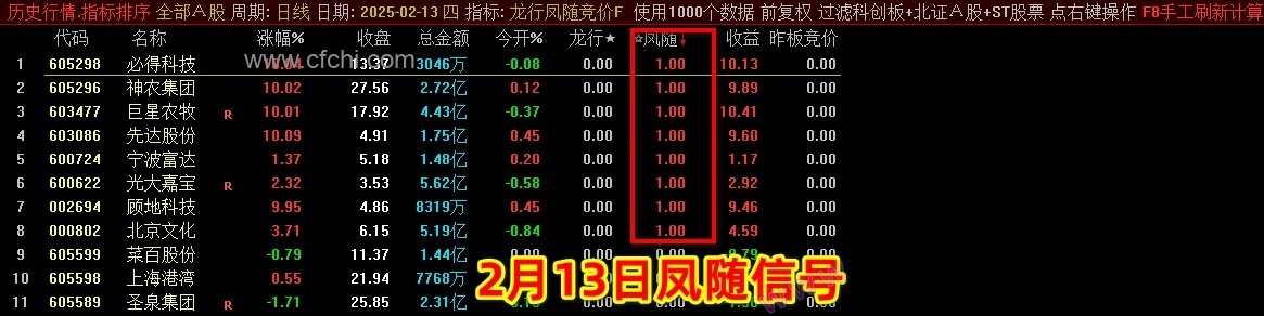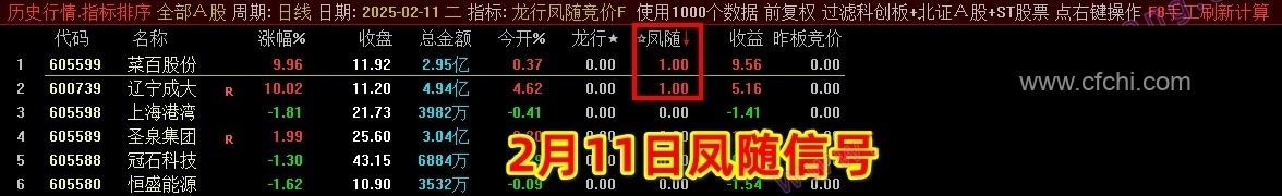 5、通达信【2025龙行凤随竞价系统】凤随信号,特色竞价策略,如同凤凰护航。主要抓首版!