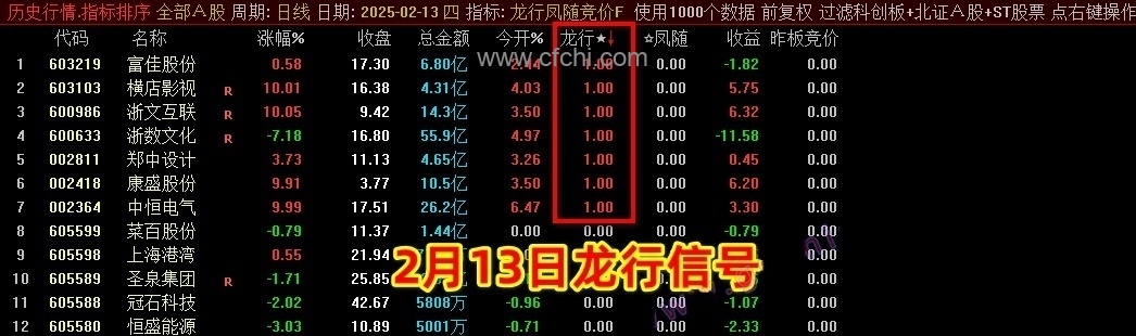 2、通达信【2025龙行凤随竞价系统】指标最大特点,全天信号不变,可回测历史数据!