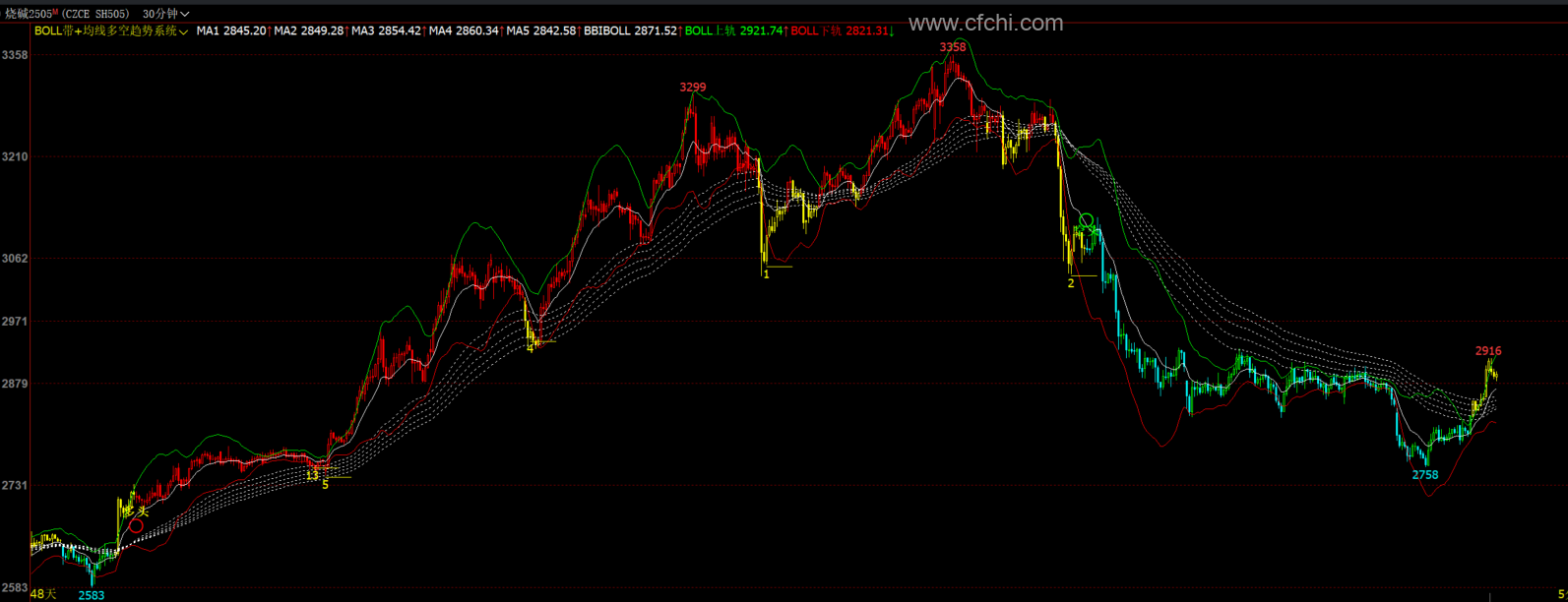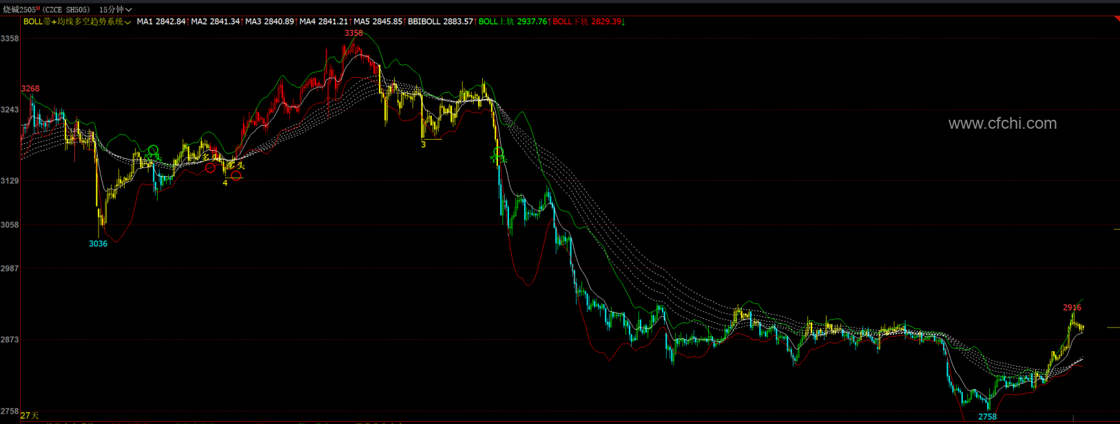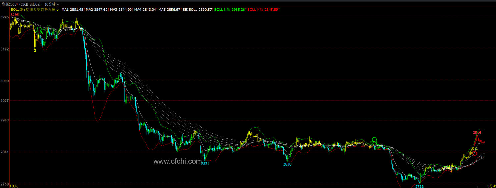 文华财经期货主图指标-boll多空均线突破交易|变色震荡K线。