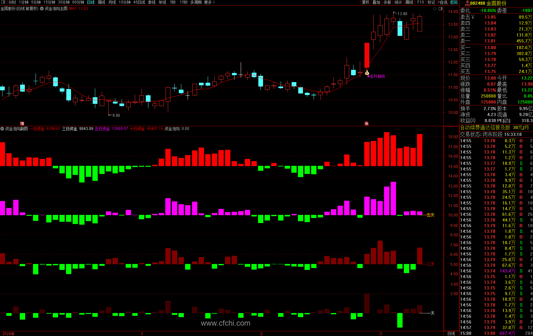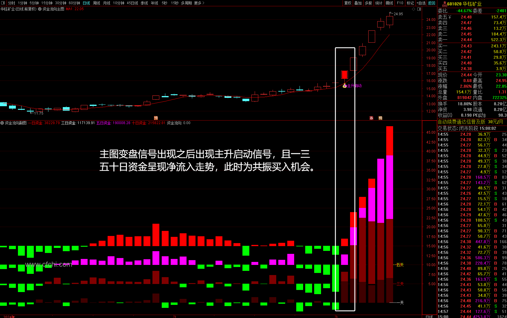 (通达信资金流向主副选,一个短线资金净流入指标,总是买在主升浪起涨前)