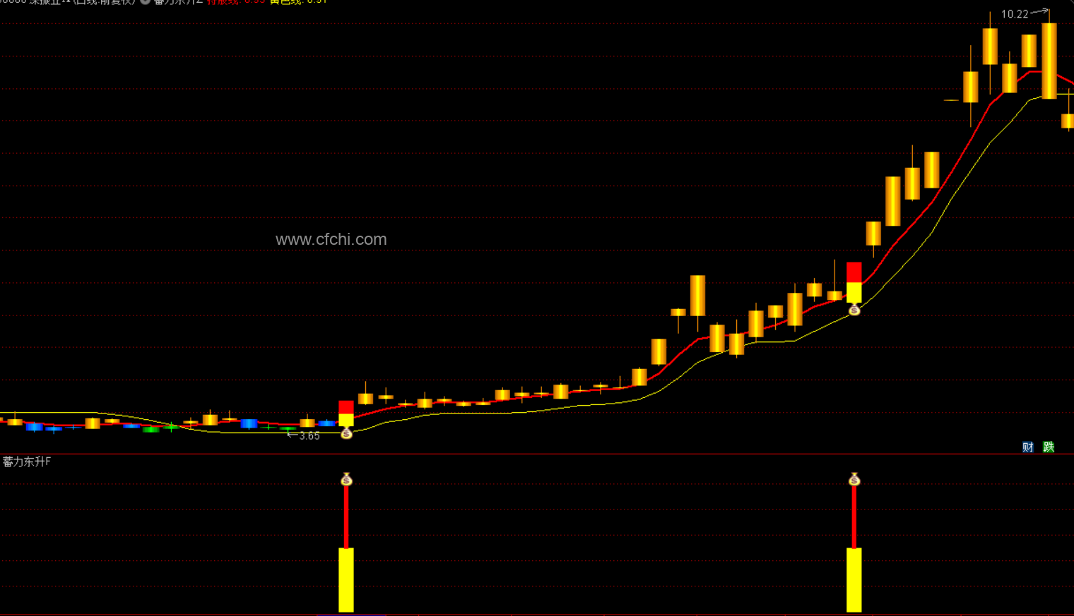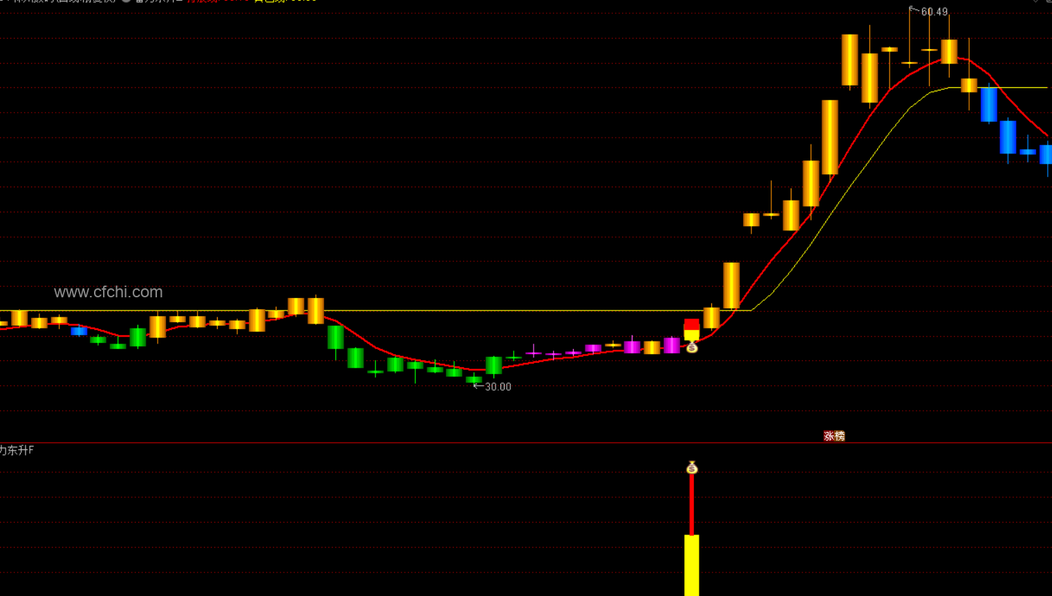 红黄K(钱袋子)为选股提示信号。
