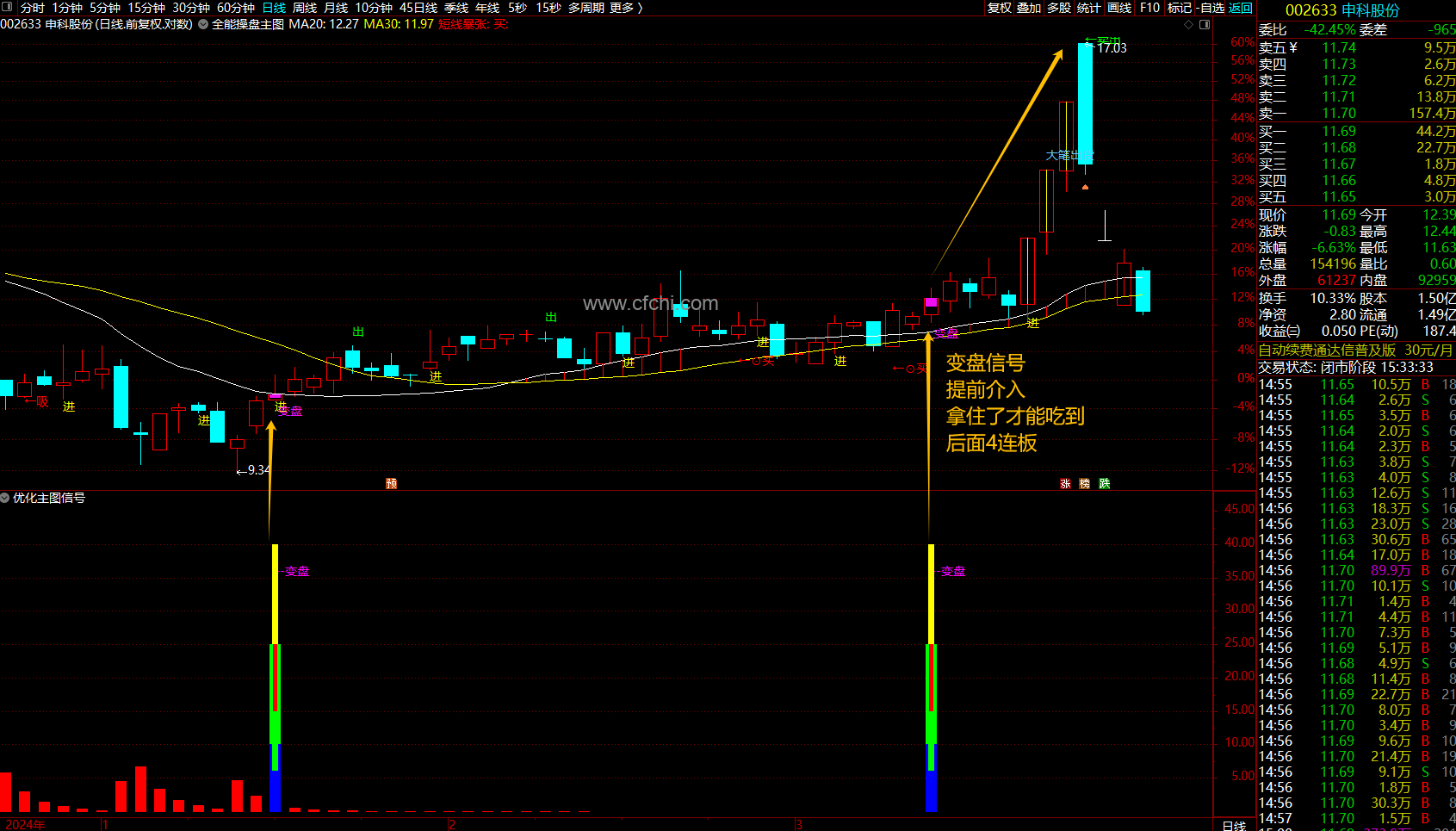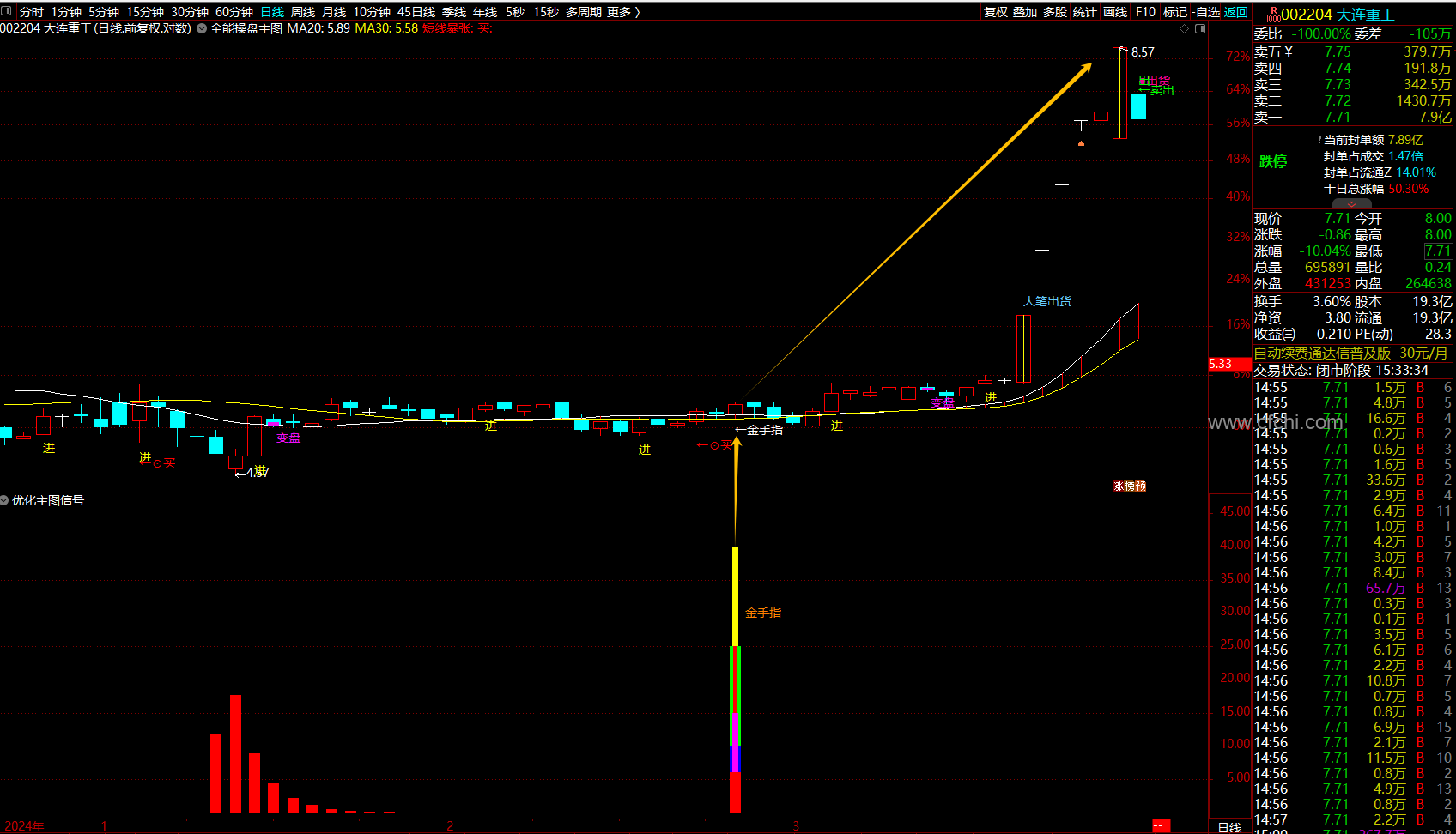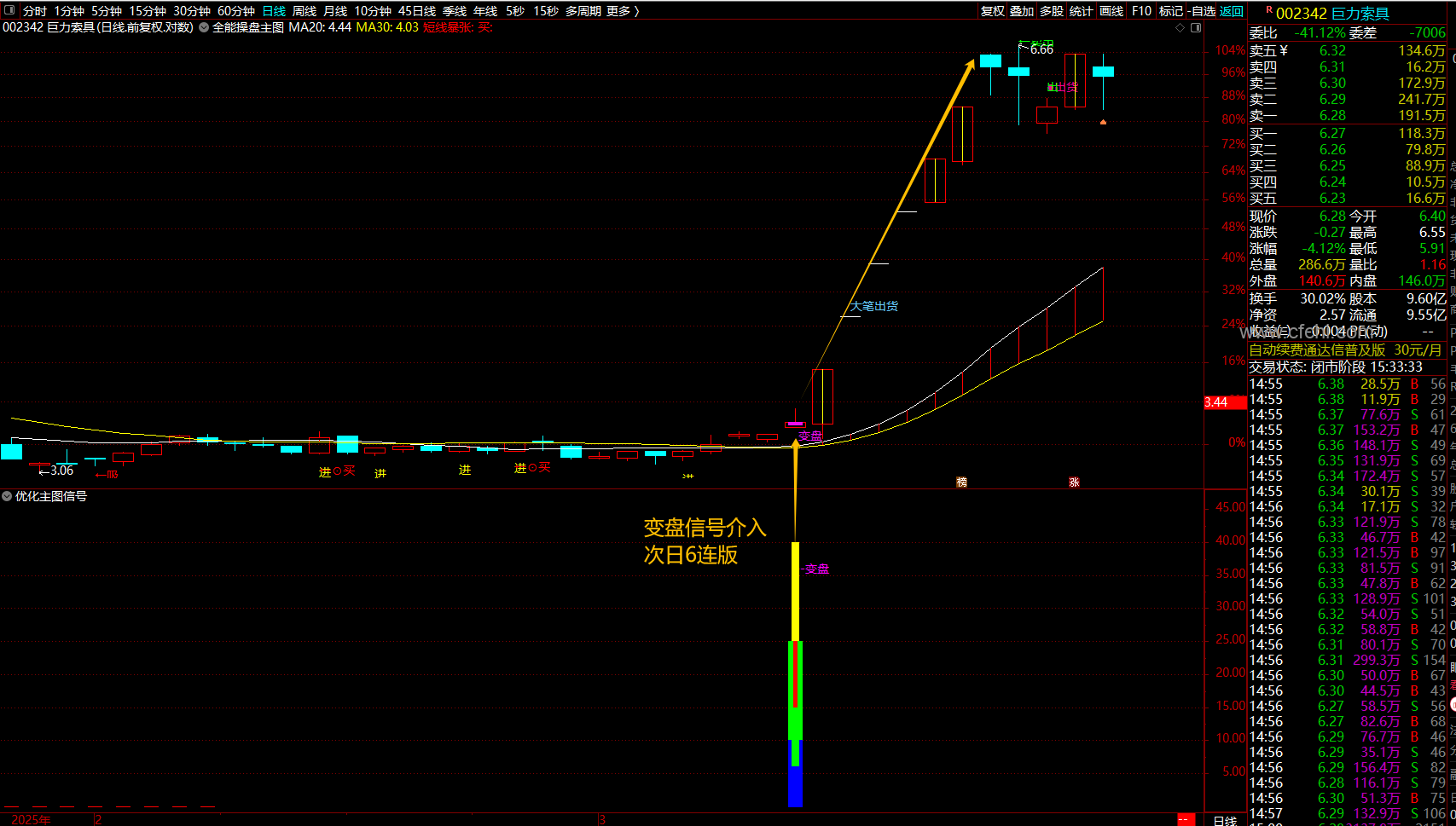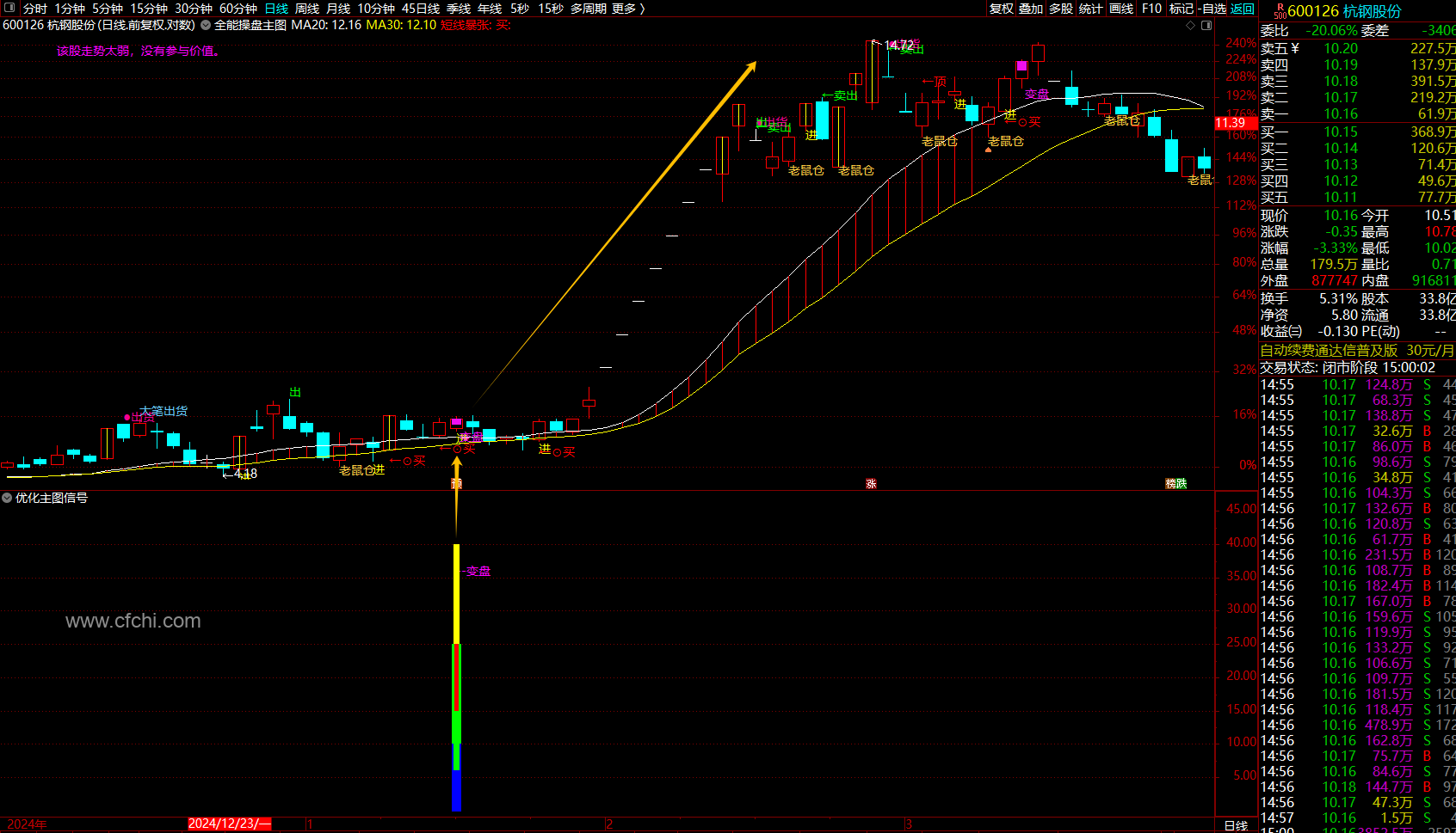 5、介入后根据主图信号提示操作或者根据自己经验对个股行情分析自行操作。
