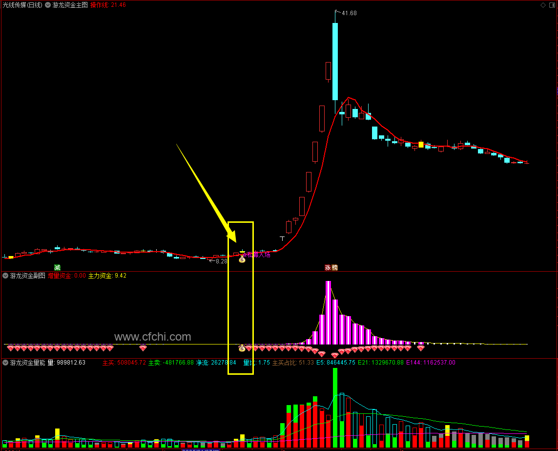 - 主力资金:以白色柱状图刻画大资金中长期布局力度,柱体出现表明机构资金开始介入。