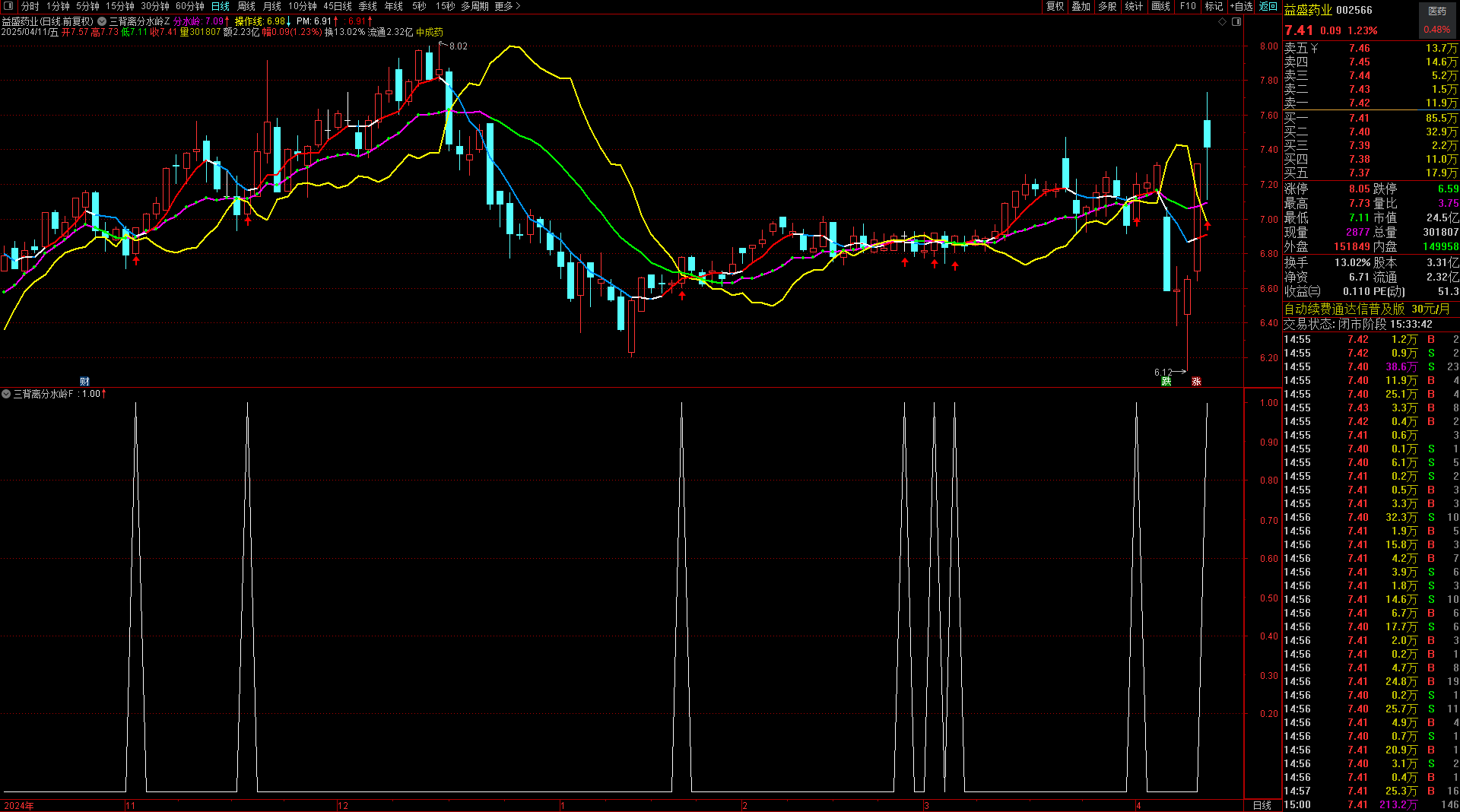 操作线:基于分水岭与3日EMA的差值,反映短期价格波动,可视为买卖参考线。