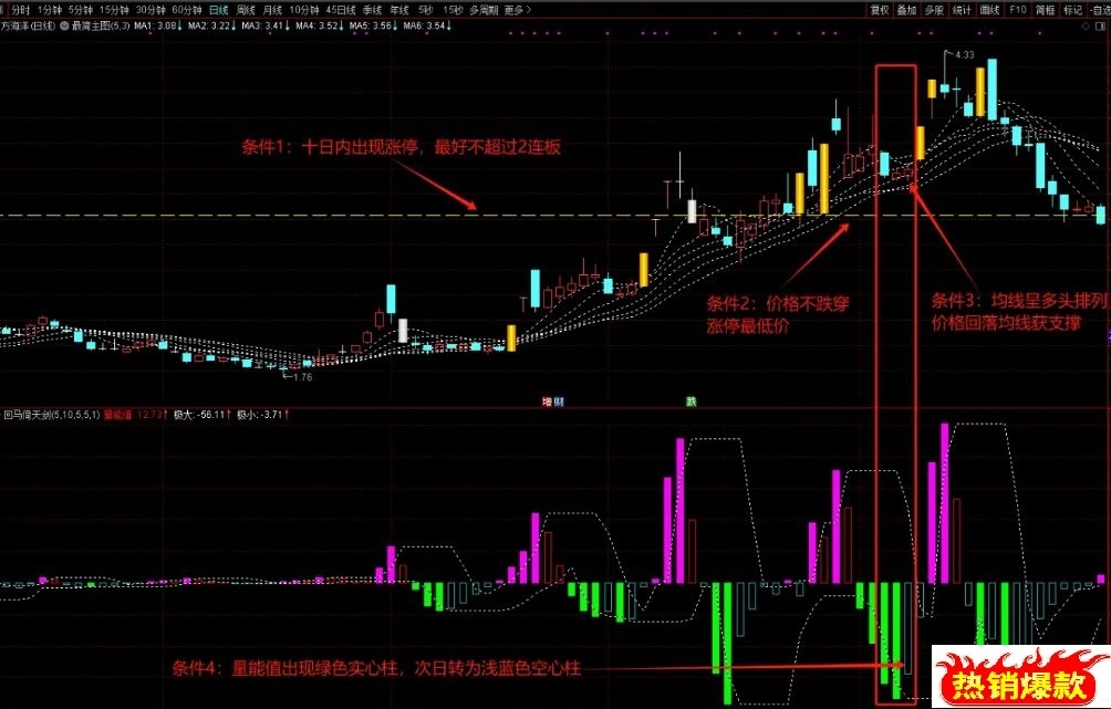 (〖回马倚天剑〗通达信回马倚天剑副图指标,首次探索精准量化涨停回马枪进场节点!源码)