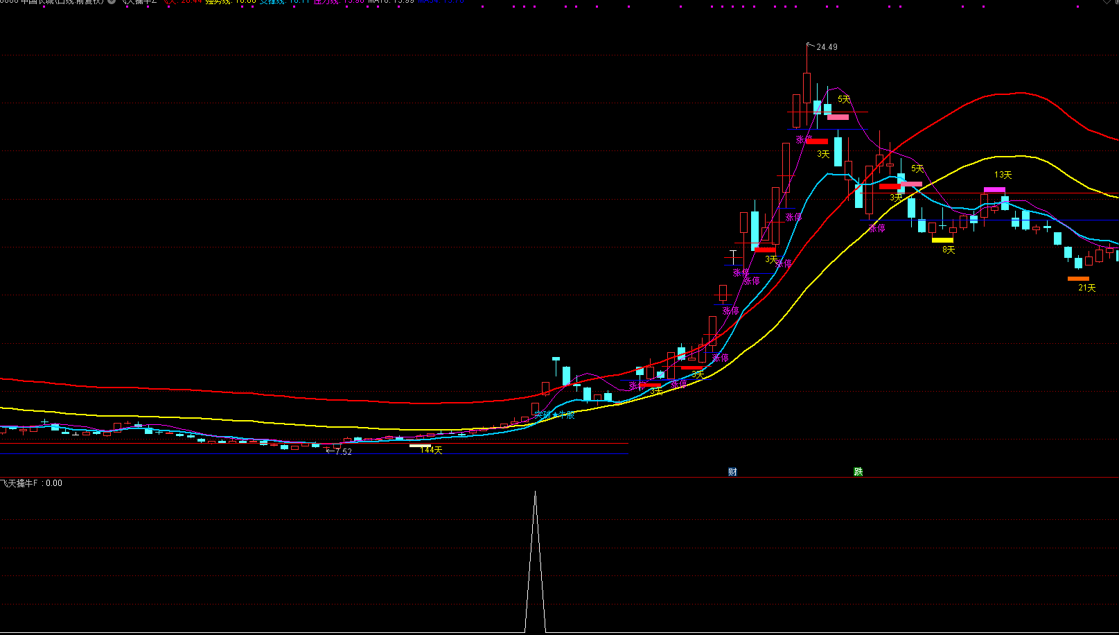 在13天/21天/34天等关键周期日,股价突然高位放巨量,这是游资集体跑路的信号,跟着砸!(口诀:飞天线上笑哈哈,压力不过反手砸,周期末日提款跑!)