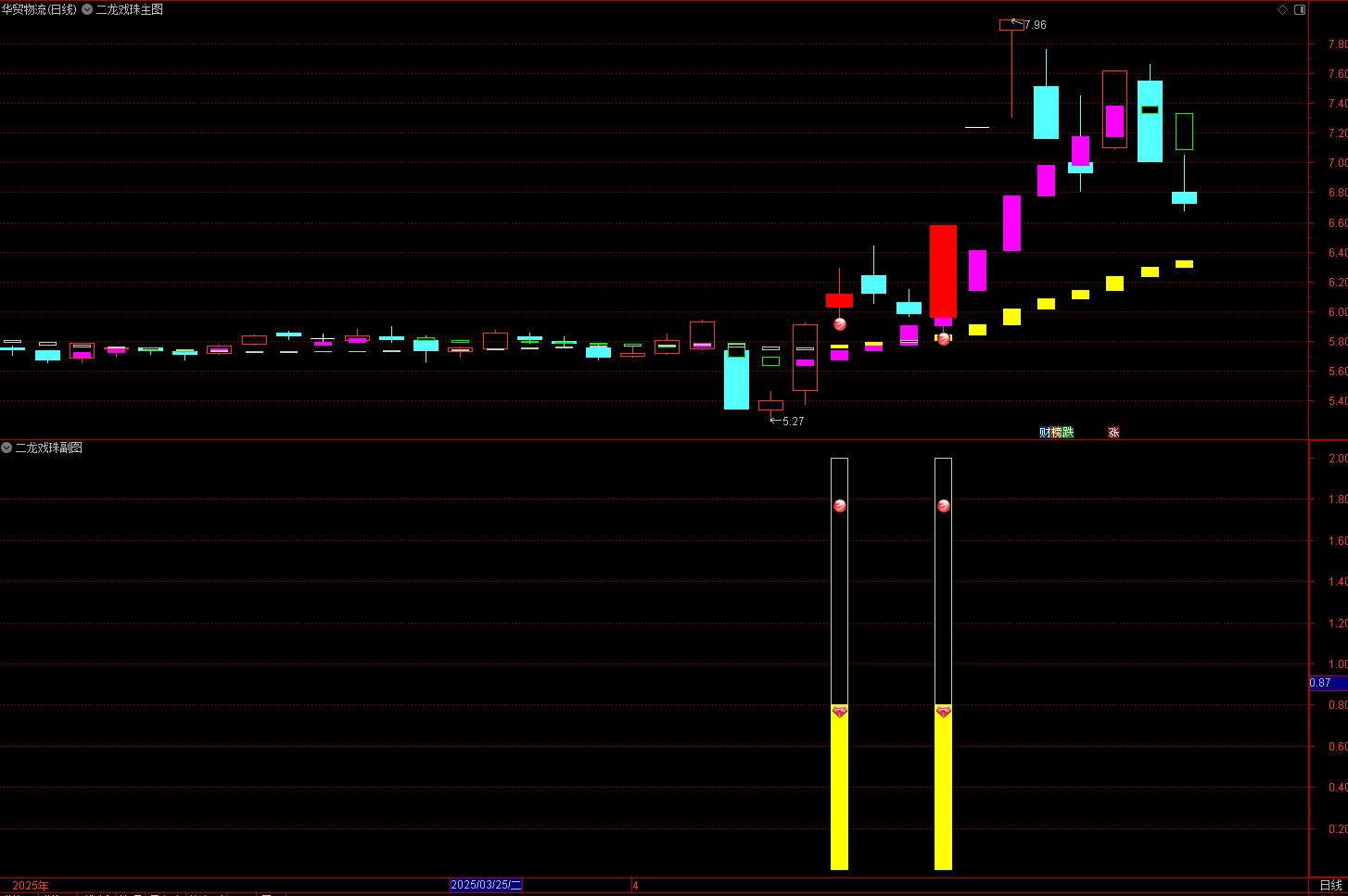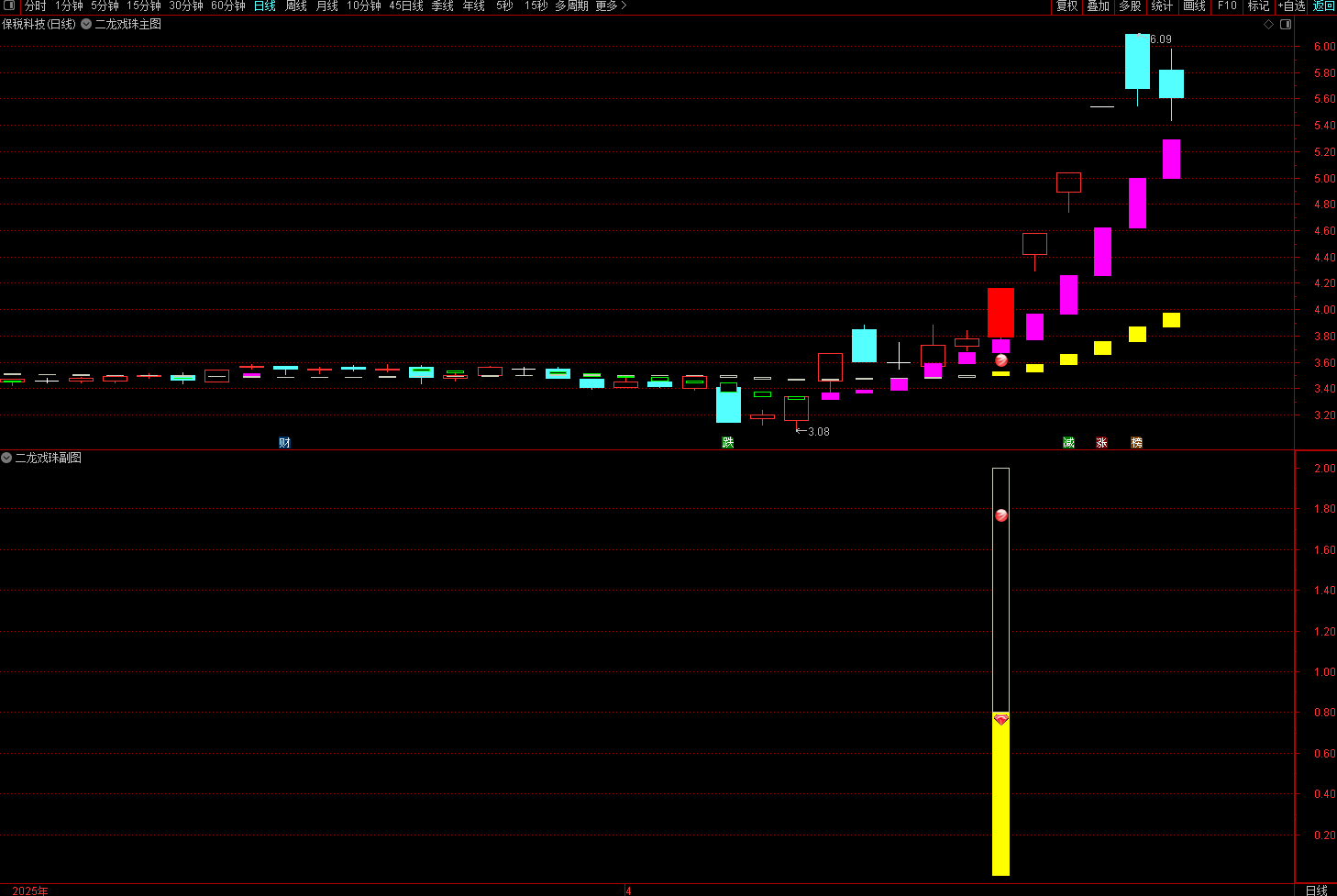 (通达信〖二龙戏珠〗套装指标 捕捉趋势启动点和判断趋势持续性)