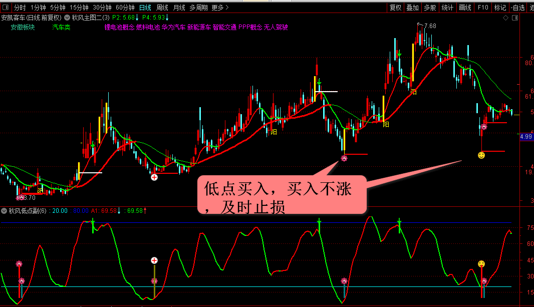 (可以买在波段低点的指标:低点买入主图图副图选股三合一)