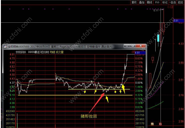 案例A:安阳钢铁:钢铁板块龙头,调整时有破位,调整时间一天