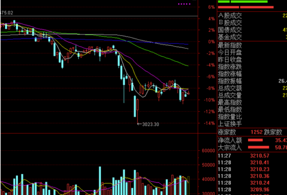 以打压股价为目的,在建仓时积极对敲;庄家是为了以低价收集更多的筹码,并经常通过互相敲打来抑制股价。在个股k线图上,当股票处于较低价格时,股价往往以小负值的形式持续上涨,说明有较大的买家在积极吸纳。此后,出现了大量的成交和长时间的阴线回调,而阴线往往是由庄家重挫股价形成的。长期以来,在此期间股价基本处于低位并横向盘整,但成交量却在悄悄放大。此时,盘面表现的特点是,当股票下跌时,单个成交明显大于单个成交上涨或横盘。如果此时能够识别出庄家的对敲位置,投资者就可以脚踏实地的买入底价。