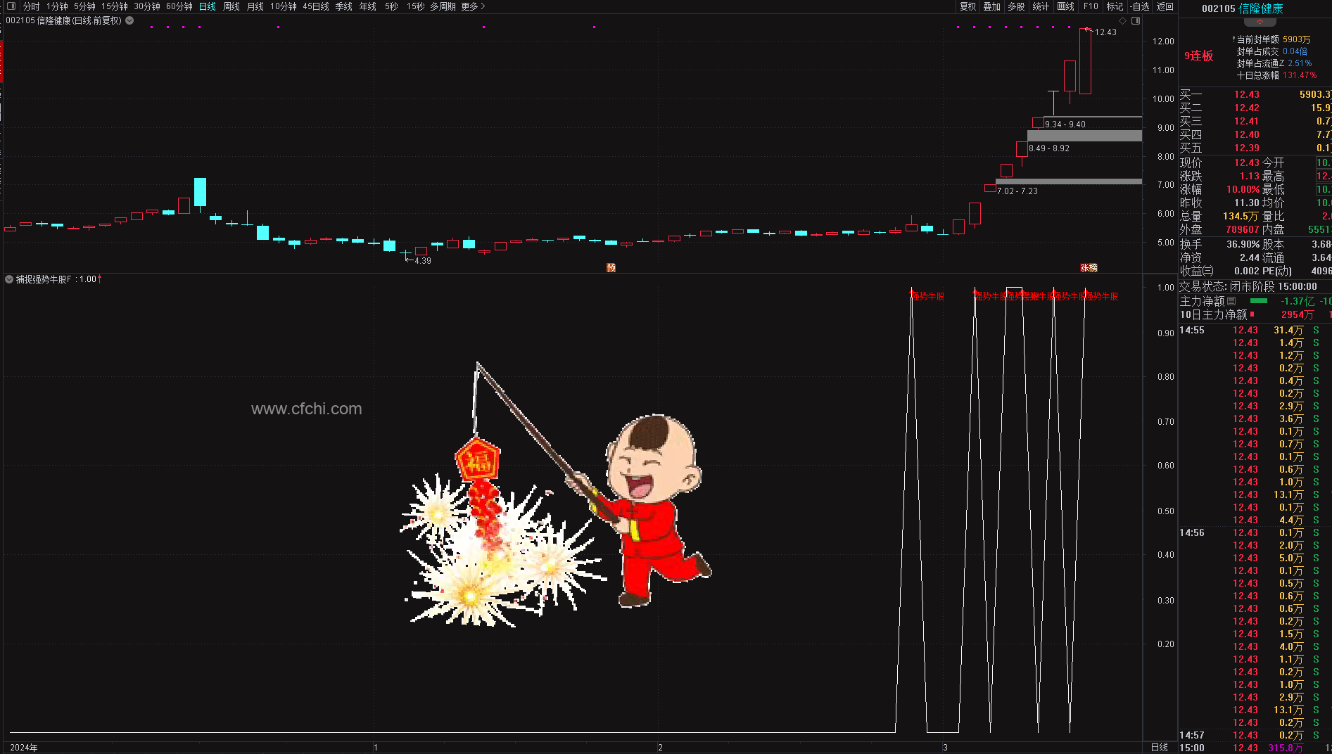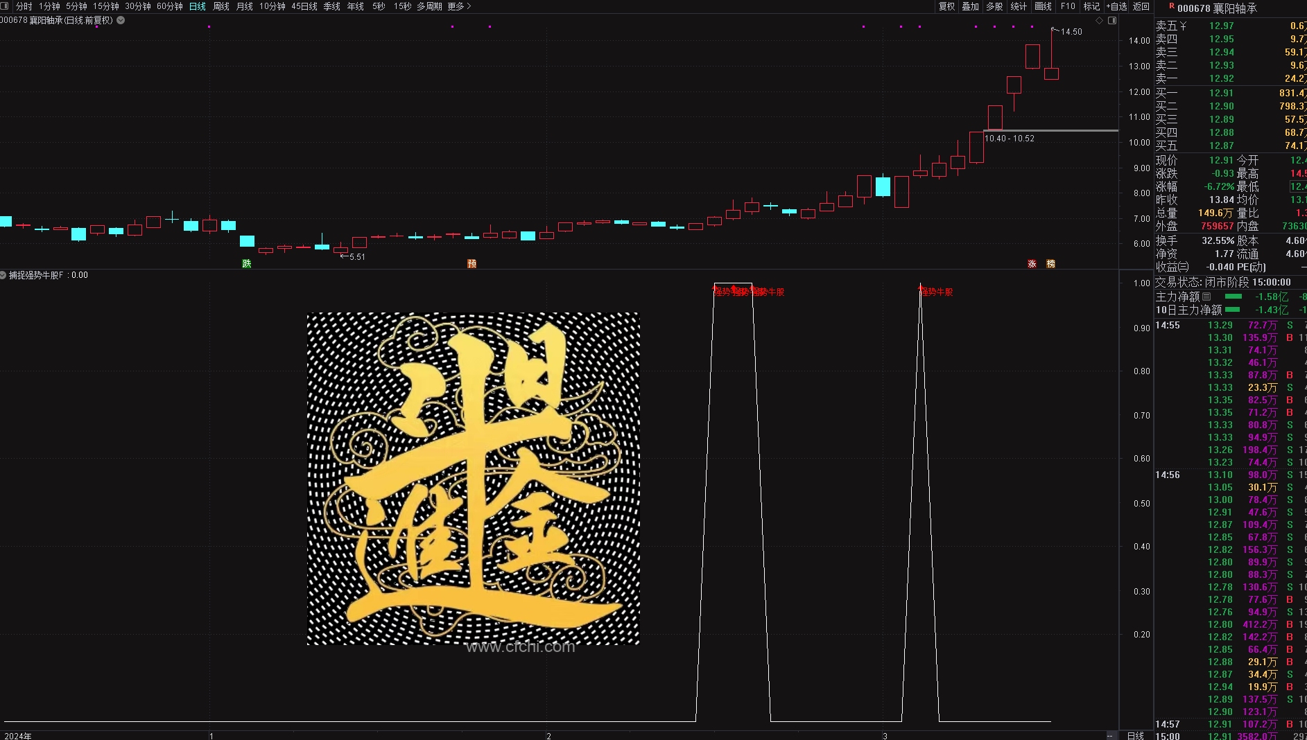 副图显示:将公式加载到副图中,可以直观地看到“捕捉强势牛股”信号标记。信号出现时,结合K线形态和成交量进一步确认。