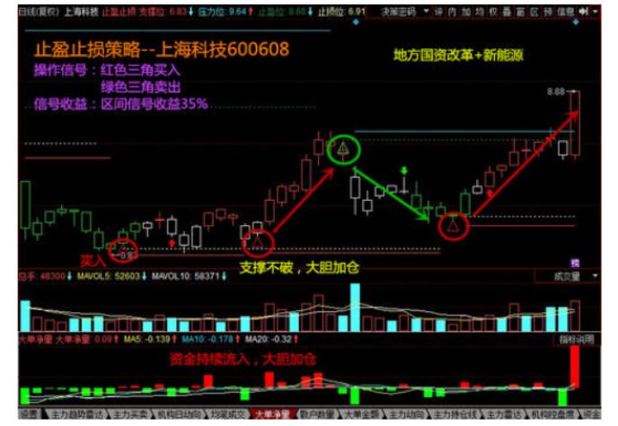 总结:这种股票波段止损,止损比较大,止损一般是放在行情的波峰波谷的,做日内交易的朋友,这种止损方式就基本没参考价值,唯一好处就是,如行情趋势发展,它几乎能保证一直持有仓位,利润最大化,很适合趋势交易。