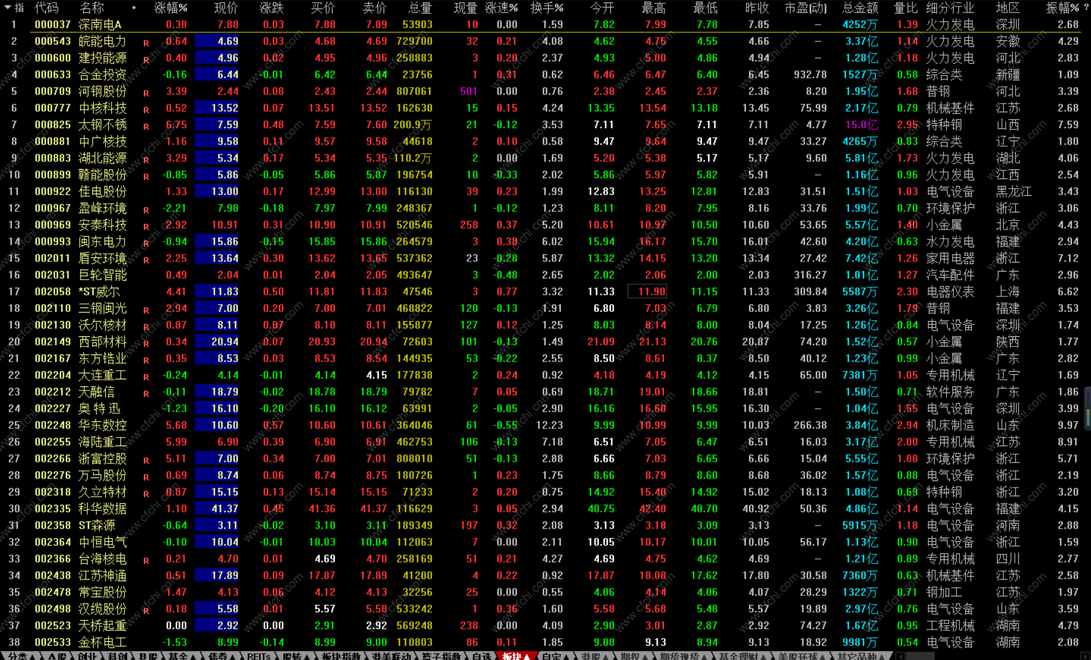 更多核电这个股票板块的股票及其股票代码可以打开炒股软件查看,以通达信为例,这里打开板块-->概念板块-->核电查看核电的全部股票代码。