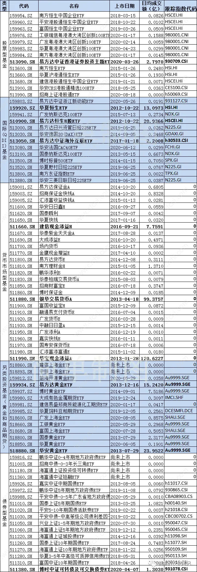 t+0的etf基金有:华夏恒生ETF(159920)、南方中国(160125)、华安标普全球石油(160416)、南方恒生H股(160717)、嘉实黄金(160719)、易方达黄金(161116)、国投新兴(161210)、招商金砖(161714)、银华通胀(161815)、华宝油气(162411)