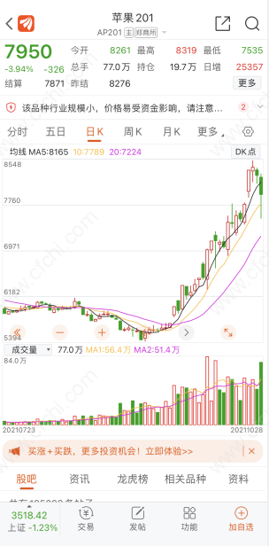 期货行情可以通过一些期货软件进行查看,以东方财富APP为例。下载安装东方财富手机APP,打开登录,然后在行情选择 “期货”就可以看到相关期货行情。如图下:苹果201期货行情