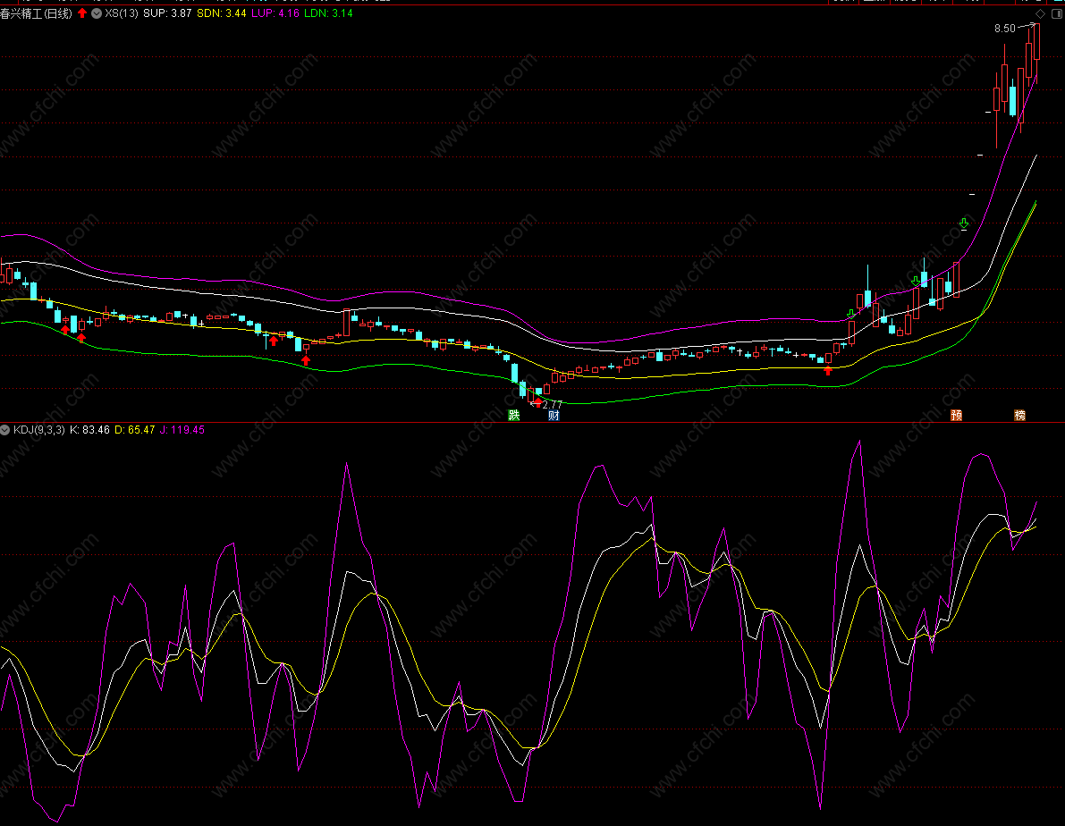 薛斯通道和KDJ指标可以一起用,因为:薛斯通道指标属于趋势波段指标,而KDJ指标属于短线指标,我们都知道,做趋势最难受就是其中的波动,一直拿着必须忍受波动带来的亏损,瞎操作又怕卖飞,而薛斯通道和KDJ指标就可以解决这个问题。