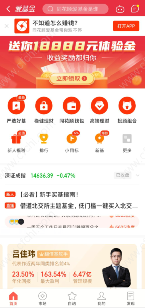 2、通过同花顺APP软件的爱基金进行购买,如下图: