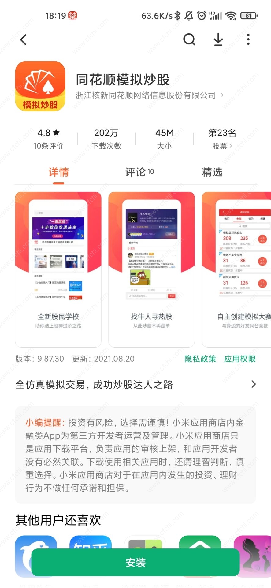 1、安卓手机可以在自己的应用商店搜索:同花顺模拟,就可以找到同花顺的模拟炒股软件,如下图: