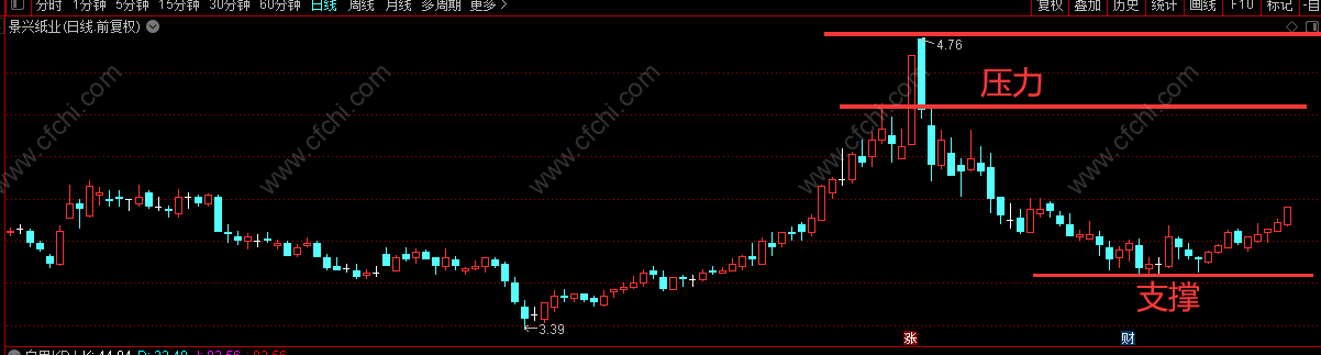 股票支撑位和压力位在k线上怎么看: