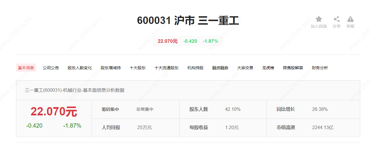 1、三一重工股票信息: