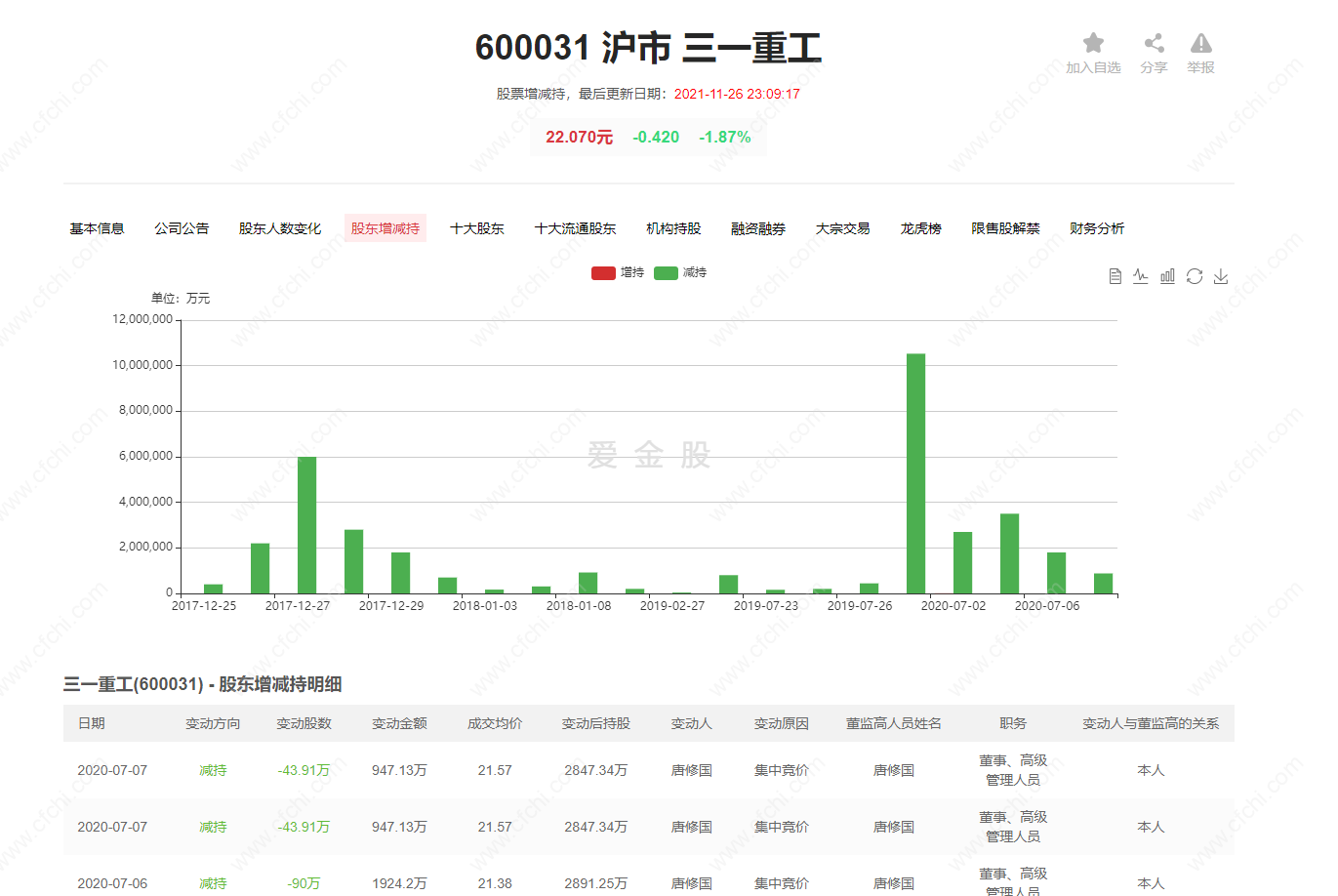 (2)、三一重工高管减持情况