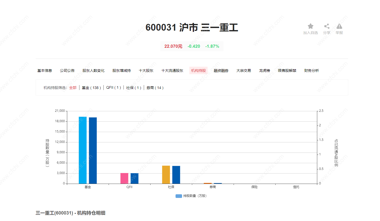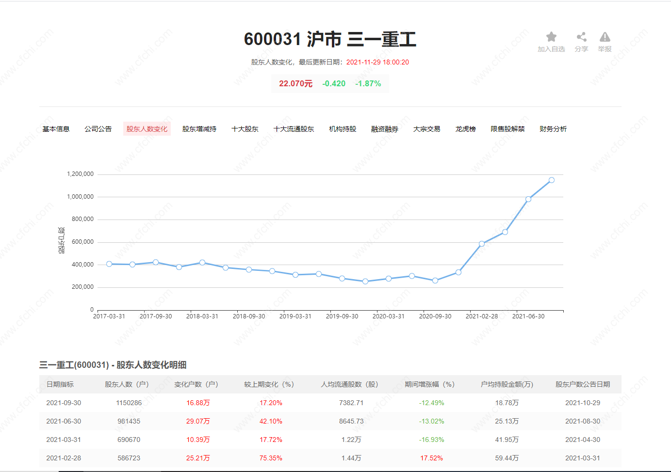 2、我们可以通过爱金股股票查询了解三一重工的基股东人数情况。