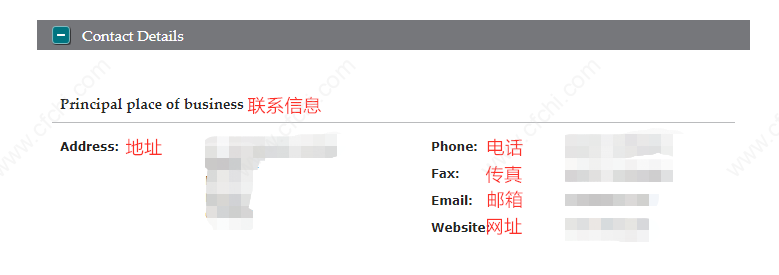 4.确认联系信息(Contact Details):网址、地址、电话、邮箱